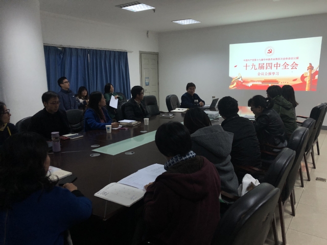 通过学习,大家纷纷表示,要进一步认真学习领会全会精神实质和公报丰富内涵,切实把思想认识统一到党的十九届四中全会精神,在工作中进一步增强“四个意识”,坚定“四个自信”,坚决做到“两个维护”,统筹抓好当前各项工作的推进落实,从而推动学院各项工作再上新台阶。
