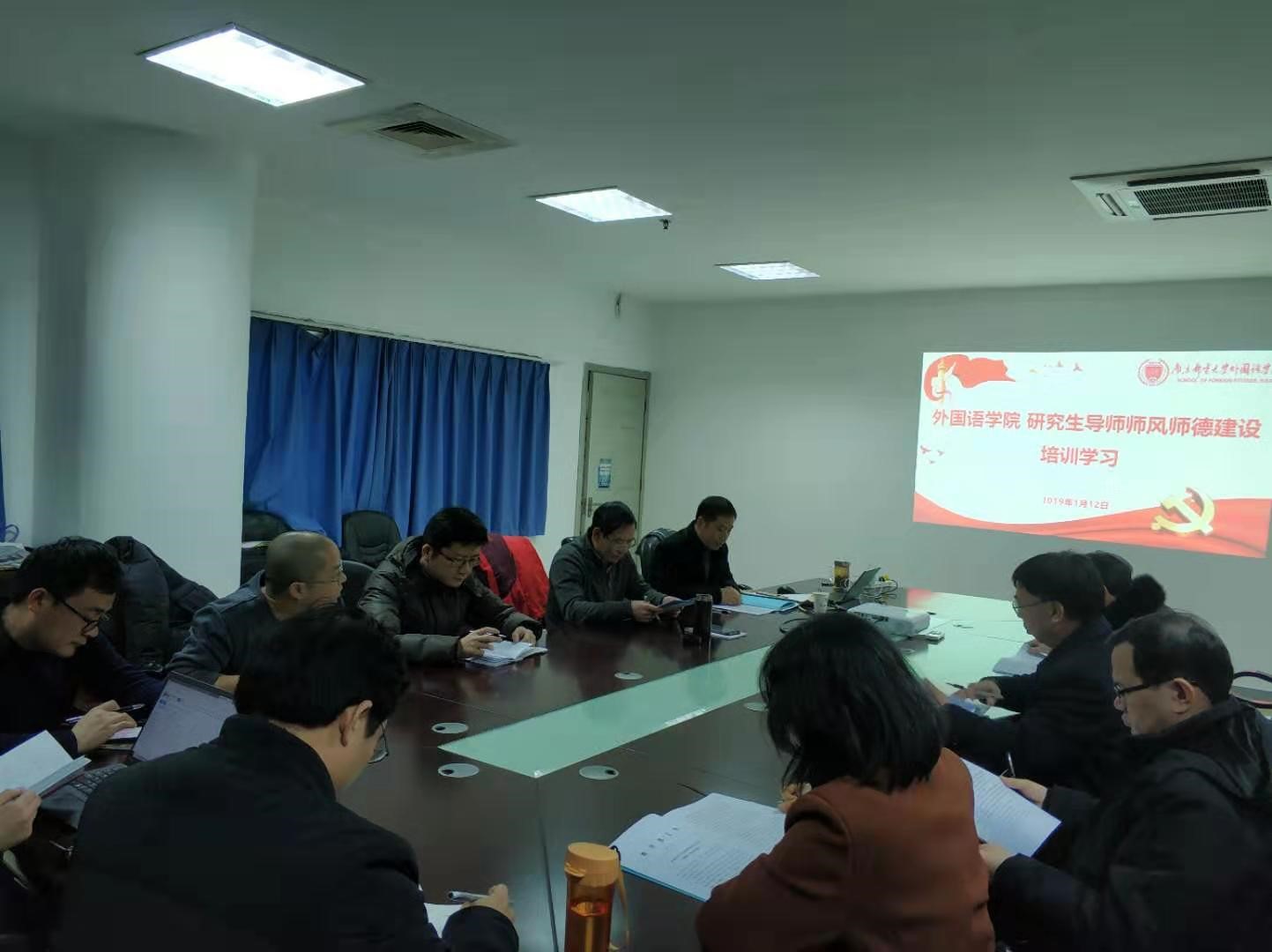 1月12日下午,学院召开全院研究生导师师风师德建设培训学习会,院长王玉括、院党委书记陈晓波、副院长李炯英、袁周敏出席,全院在宁研究生导师参加会议。会议认真学习了《教育部关于全面落实研究生导师立德树人职责的意见》《关于加强研究生导师队伍建设的意见》《江苏省研究生导师职业道德规范“十不准”(试行)》《南京邮电大学全面加强新时代研究生导师队伍建设的实施细则》《南京邮电大学研究生导师工作管理规定(修订)》。 院长王玉括强调,不同的学生,性格不同,知识结构不同,针对学生的个体差异,导师要坚持因材施教,既要做好学业指导,同时还要做好心理疏导,要本着对学生高度负责的态度,全力做好研究生培养工作。 院党委书记陈晓波指出,全体导师要严格遵守各项规定,知敬畏、存戒惧、守底线,一要坚持正确的政治方向,落实立德树人根本任务,培养德智体美劳全面发展的社会主义建设者和接班人;二要加强师德师风建设,做到学高为师,身正为范,努力成为“四有”好老师;三要关爱学生,坚持严管与厚爱相结合,构建和谐师生关系,为学生成长成才保驾护航。