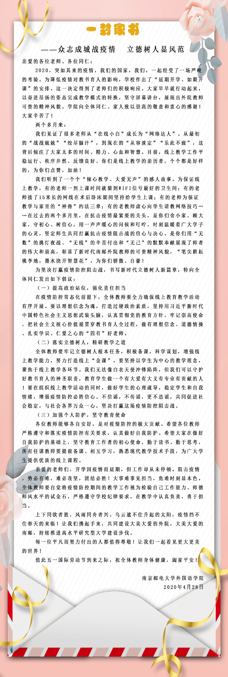众志成城战疫情 立德树人显风范 —— 致新葡的京集团8814全体教师的一封家书