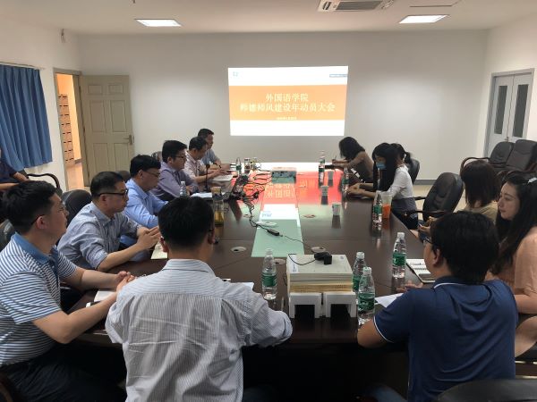 会议指出,师德师风问题,直接影响到人才培养质量、教师自身发展、学院事业发展;要强化构建师德师风建设常态化机制、注重正面宣传为主警示教育为辅、党员干部要示范带动发挥头雁效应。师德师风是学院改革和发展的源动力之一,要努力铸造一支政治可靠、师德高尚、业务精湛、协同育人的高素质、专业化、创新型外国语教师队伍,以优良的师德师风纯正教风、浓厚学风、优化院风。会议指出,学校第三次党代会,明确了新时期学校的奋斗目标,学校的发展离不开每一个学院的发展。作为学校的一分子,学校大发展,学院必须考虑,我们需要做什么,我们能做什么,我们怎么做?全院上下,要严格对标找差,针对人才培养、学科专业建设、师资队伍建设、科学研究等方面存在的短板,对照年度目标任务,对照教师年度绩效考核,未雨绸缪,早作准备,把事业发展各项具体工作落实落细。
