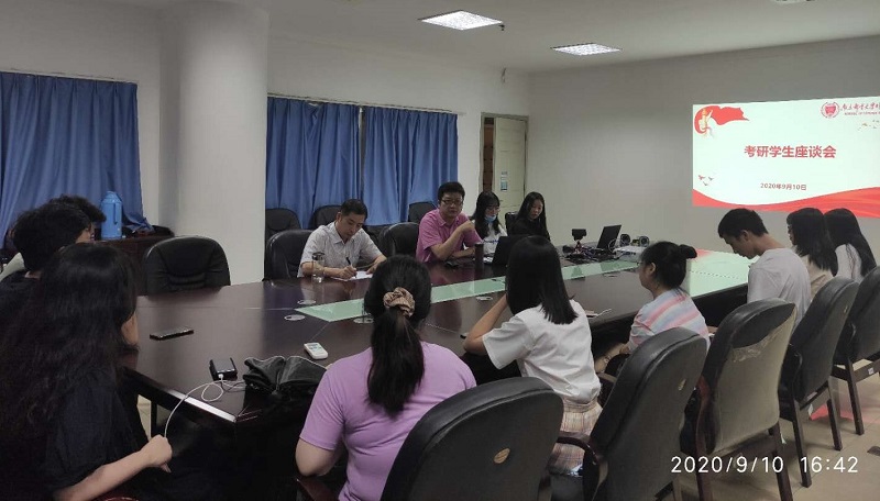9月10日下午,学院召开部分考研学生座谈会,院党委书记陈晓波、院长袁周敏与对口指导帮扶的2017级考研学生交流座谈。
