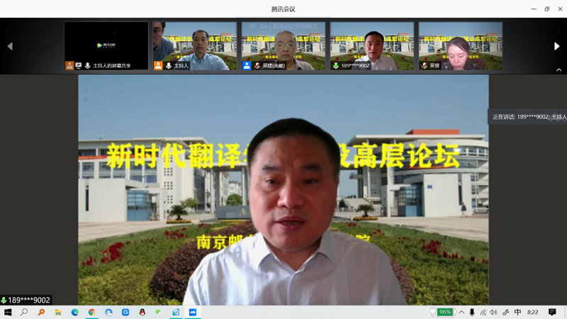 2020年9月26日,由新葡的京集团8814主办的“新时代翻译学科建设”高层论坛如期举行,论坛采用腾讯会议和B站直播方式进行。南京邮电大学党委常委、副校长蒋国平教授致开幕辞。论坛邀请中国译协常务副会长、外文局译审黄友义教授,北京外国语大学王克非教授,广东外语外贸大学穆雷教授,同济大学新葡的京集团8814院长吴赟教授等四位专家做主旨演讲。学院王玉括教授、李炯英教授、袁周敏教授共同主持论坛。论坛吸引校内外近2300多名师生参与。