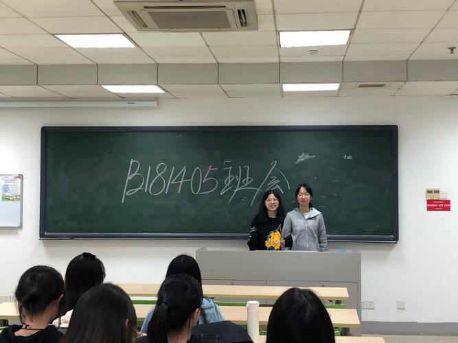 班长郑兴辰代表全体同学对张瑜、归晴悦两位远道而来的交流同学表达了热烈的欢迎;两位同学作自我介绍,并就近两周的学习情况进行了汇报,并与学习委员高逸、文体委员蔡欣丽进行“一对一”接洽,以期尽快适应新班级,解决遇到的困难;班会过程中,杨晗、胡紫文、冯振洋同学分享了半学期以来对专业课程学习的感想的和任课老师的建议,班长郑兴辰记录并做反馈准备;生活委员陈施颖向班级同学公示了本学期班费花销及余额。