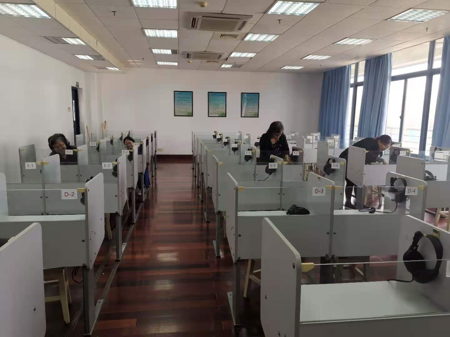 仙林校区教三5楼有三间语音室因耳机设备老化影响正常教学,学院购置一批新耳机对其进行更换。11月16日中午新耳机到货,为尽早恢复正常教学秩序,外语教学实验中心利用中午休息时间检修更换了全部180个语音设备学生终端和耳机。