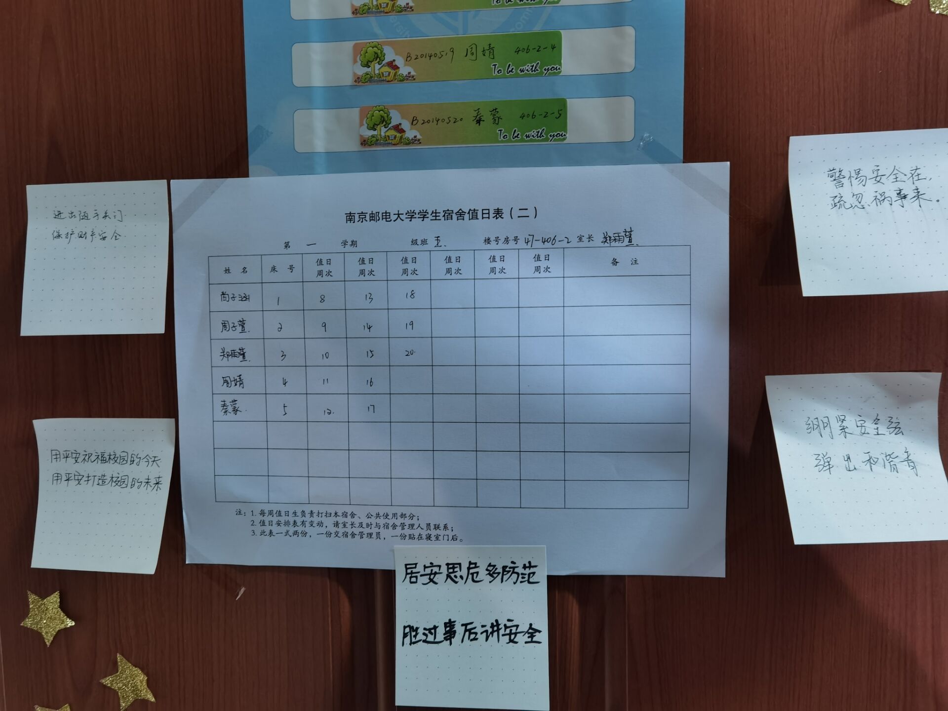 本次活动由班长李馨怡同学主持,针对消防安全、交通安全、财产安全、人身安全和网络信息安全五个方面进行了主题教育宣讲。在活动现场,班长李馨怡同学首先播放了相关教育视频,强调宿舍消防安全的重要性。同时结合本班情况,指出宿舍内现存问题,并与同学们现场探讨相关问题的解决方案,让同学们更直观了解校园内潜在的安全风险及预防措施、应对方式。在文娱委员张婧同学的指导下,同学们开展了安全知识相关的你画我猜游戏,气氛热烈。活动结束后,同学们还在宿舍内张贴起了相关安全标语,将安全意识牢记心间。