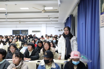 宣讲会伊始,蒋超老师向大家讲述了学习党史、新中国史、改革开放史、社会主义发展史这“四史”的重要意义,并借用“四史”学习教育视频展现了党和国家波澜壮阔的发展史,鼓舞同学们在学思践悟中坚定理想信念,在奋发有为中践行初心使命。