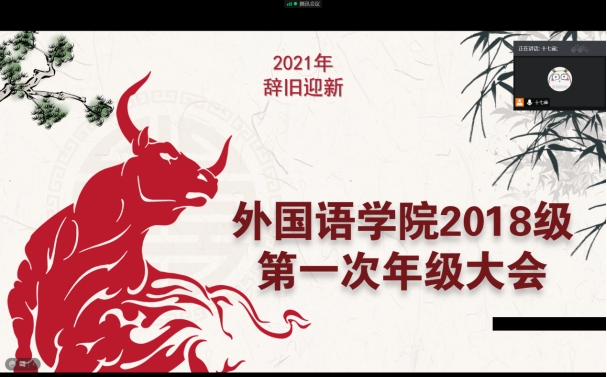 2021年2月10日晚19:30,新葡的京集团88142018级召开本年度第一次年级大会,会议由辅导员蒋丽婷主持,全体学生线上参加。