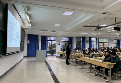 2021年4月8日晚18:30,新葡的京集团2018级年级大会暨考研就业推进会在教三-101召开。会议由党委副书记徐欣娅主持,优秀校友胡亚军老师受邀作职业生涯规划指导讲座,辅导员蒋丽婷、2017级优秀学生代表与2018级全体学生到会。