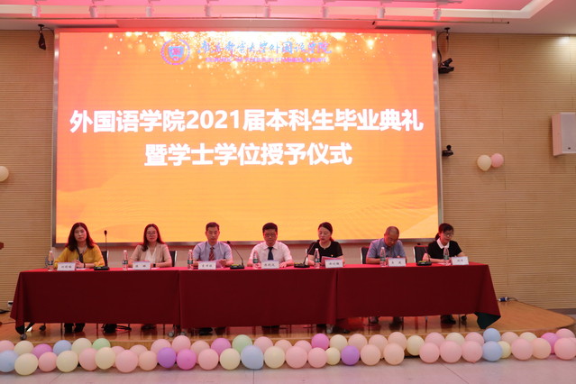 教师代表、英语系刘艳梅副教授对同学们提出了殷殷期待,她希望大家努力奔跑,做青春少年应有的模样;向上而生、向善而行,终遇美好人生!2021届毕业生代表英语系王佳丽同学首先回顾了收获满满的大学四年,她代表全体毕业生对外院老师们四年来尽心尽力的栽培表达了发自内心的感激之情,并祝愿所有的毕业生们毕业快乐,前程似海。