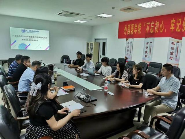 9月10日下午,新葡的京集团在圆楼420会议室召开了2021年度新教师师德师风动员暨职业生涯发展座谈会,会议由院党委书记陈晓波主持,院长袁周敏、副院长臧庆、副书记徐欣娅、大外拓展部主任颜文洁以及新入职教师共同参加座谈会。