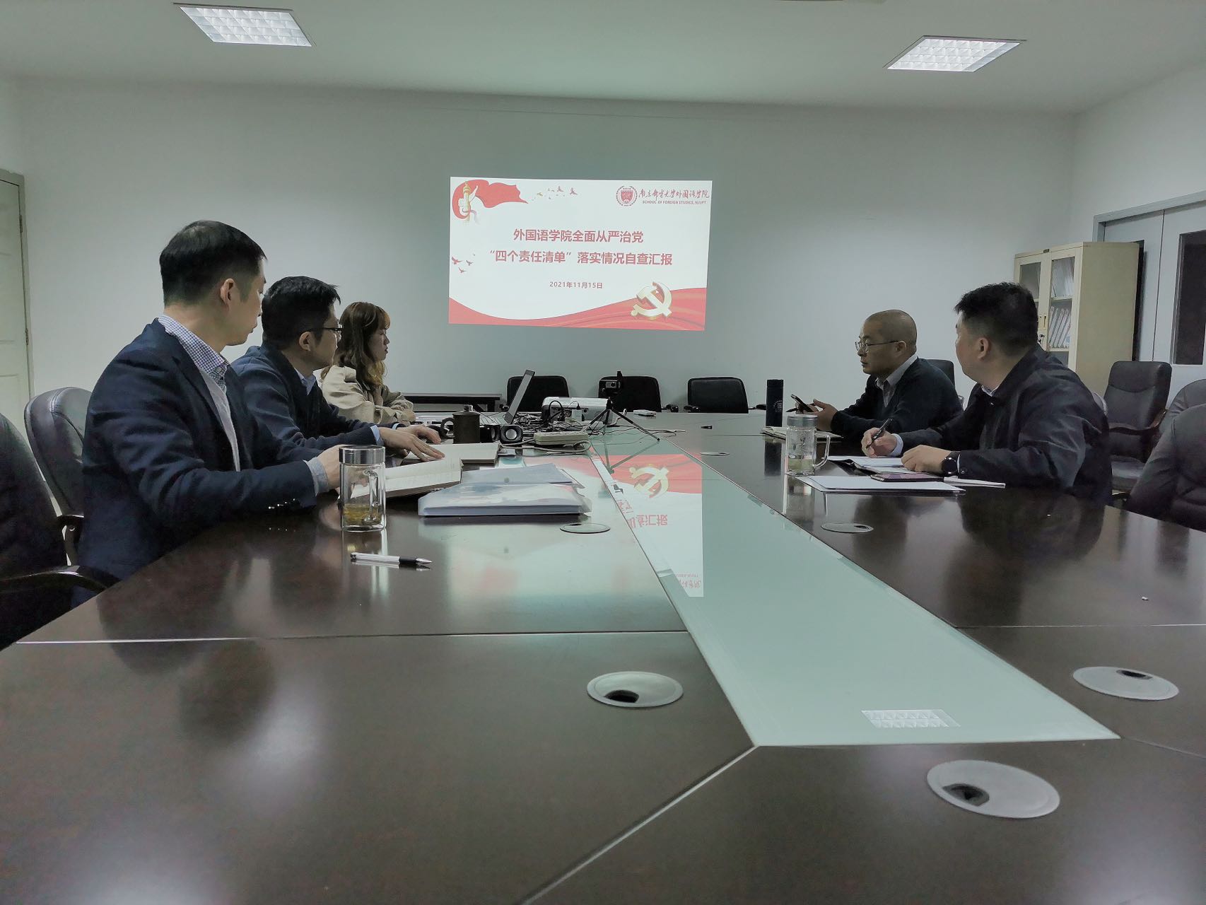 11月15日上午,新葡的京集团8814党委召开全面从严治党“四个责任清单”落实情况自查汇报专题会。根据《关于开展二级党组织“四个清单”落实情况专项监督检查的通知》(校纪办发〔2021〕9号)要求,学院党委对照学院全面从严治党主体责任清单、监督责任清单、“第一责任人”责任清单、“一岗双责”责任清单内容,逐条梳理落实情况,全面自查自纠。