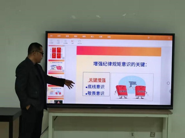 史老师以“学习党内法规,增强纪律规矩意识”为主题,就增强纪律意识与同学们进行深入交流。史老师强调,价值观念体系对个人的价值认知和行为选择起着决定性作用,同学们应当对规则怀有敬畏之心,把学习贯彻《中共中央关于加强党的政治建设的意见》等八部党内法规作为当前首要任务,使党内法规制度在自己心中落地生根。史老师从党章概述、党章发展、党章总纲等方面进行讲述,希望同学们明确做人做事底线,遵守规则,树立正确的世界观、人生观、价值观。