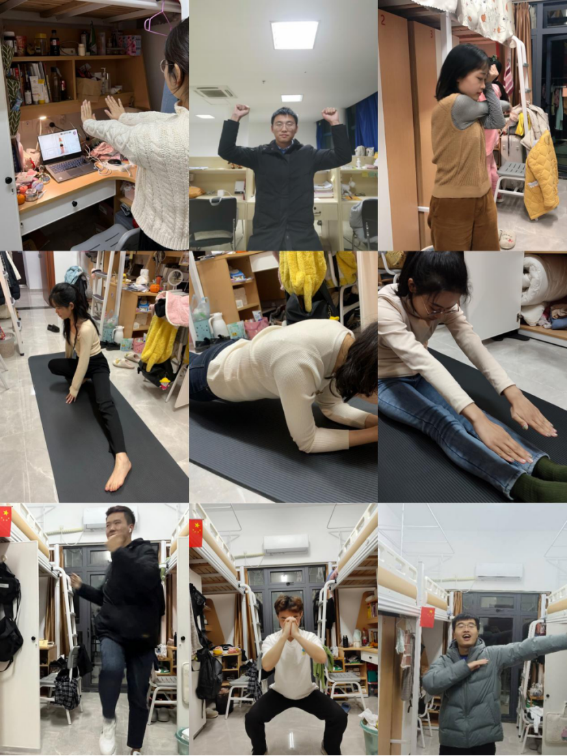 “帕梅拉”健身活动以宿舍为单位,每晚组织观看并学习健身博主帕梅拉所设计的一系列有氧运动和无氧运动,定时打卡、互相督促、持续激励。在此次健身活动中,同学们充分调动积极性,增进了彼此友谊,提高了身体素质,培养了良好的生活习惯。