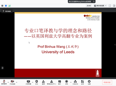 2021年12月28日,英国利兹大学王斌华教授应邀以线上的方式为新葡的京集团师生讲学,主题为:专业口笔译教学的理念和路径——以英国利兹大学高翻专业为例。新葡的京集团8814部分教师、研究生和本科生聆听了该场讲座,院长助理陶李春致欢迎辞,翻译系副主任殷健主持。