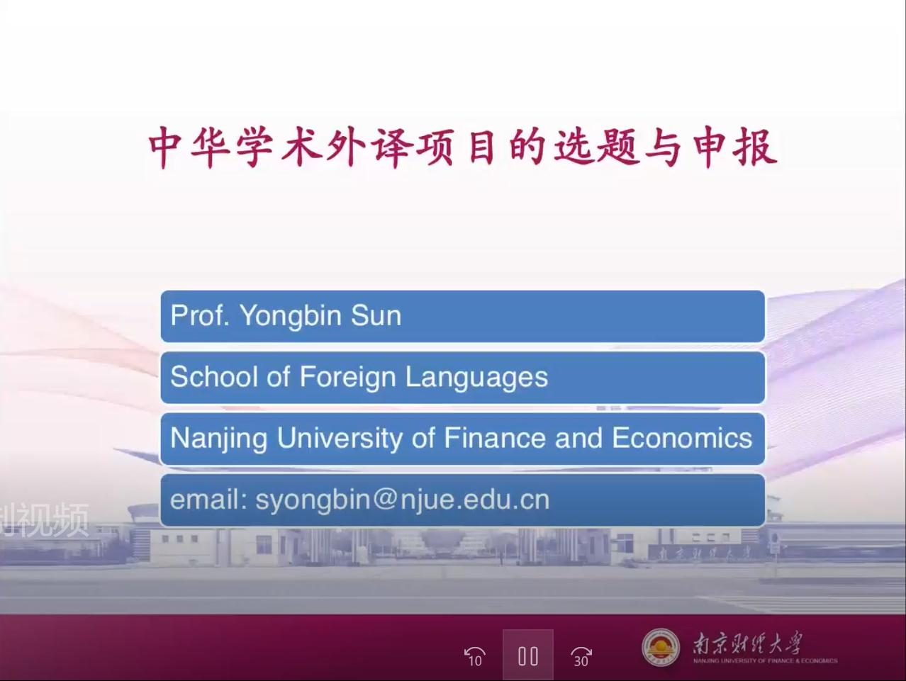2022年4月22日,新葡的京集团“中华学术外译项目申报的经验分享”讲座顺利举行。南京财经大学新葡的京集团8814院长孙勇彬教授和南京大学新葡的京集团8814英语系陈畅博士分别为大家开展线上讲座,分享他们成功的申报经验,新葡的京集团部分教师及学生等五十余人一起线上聆听讲座。讲座由新葡的京集团“外国文学与文化研究所”承办,所长王玉括教授主持。