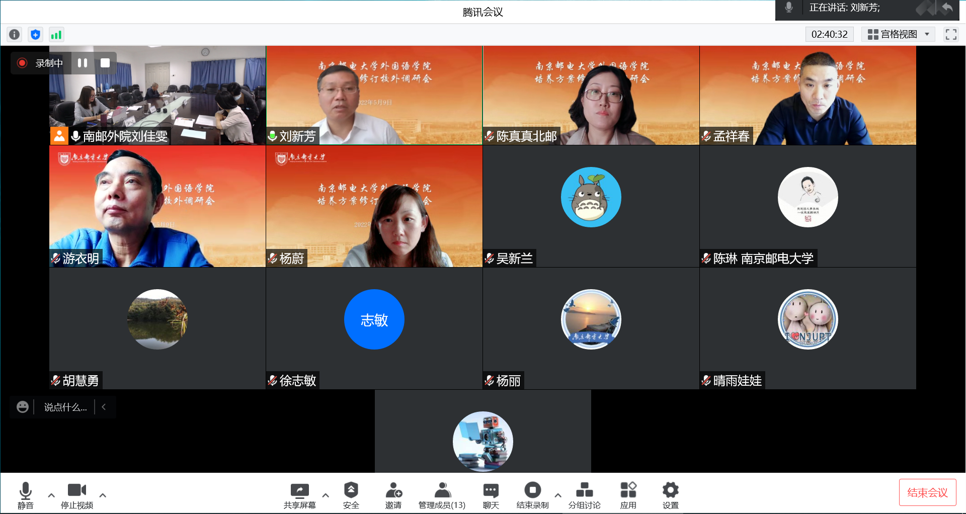 2022年5月11日,新葡的京集团8814在420会议室以线上线下结合的方式召开培养方案修订校外调研会。此次调研会邀请了苏州大学新葡的京集团8814孟祥春副院长、北京邮电大学新葡的京集团8814陈真真副院长、南京农业大学新葡的京集团8814游衣明副院长、南京理工大学新葡的京集团8814杨蔚副院长和苏州科技大学新葡的京集团8814刘新芳副院长作为与会专家。院党委书记陈晓波、院长袁周敏、院党委副书记徐欣娅、教学副院长兼翻译专业负责人吴建、英语专业负责人王玉括、日语专业负责人洪洁以及相关系部主任共同参加此次调研会。副院长陈琳主持会议。
