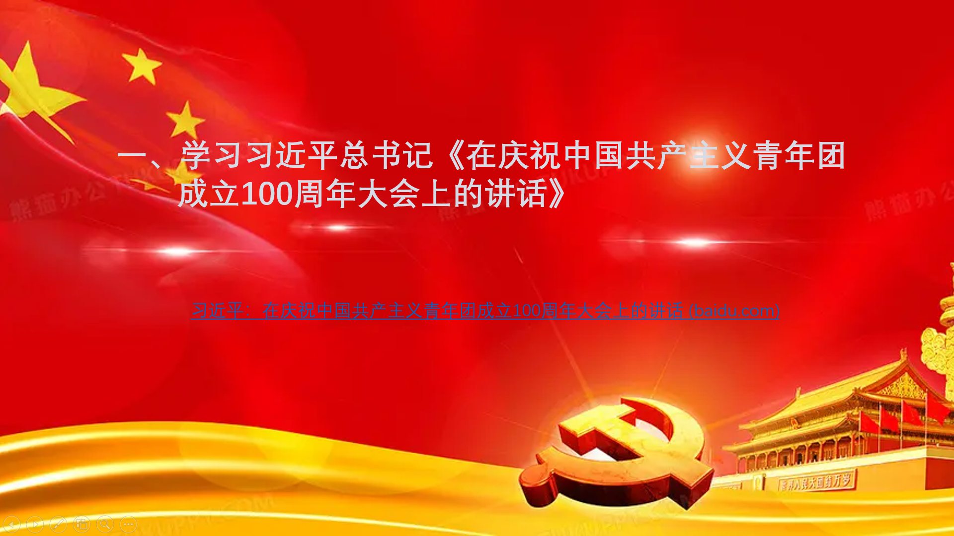 2022年5月25日,英语系、翻译系和研究生部举行会议,集体学习习近平总书记在庆祝中国共产主义青年团成立100周年大会上的重要讲话精神。翻译系系主任刘宝副教授主持学习会。