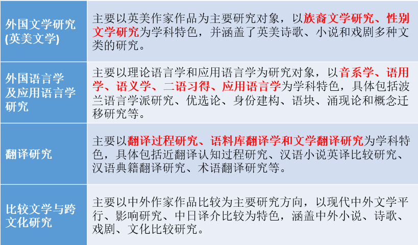 外国语言文学专业方向设置