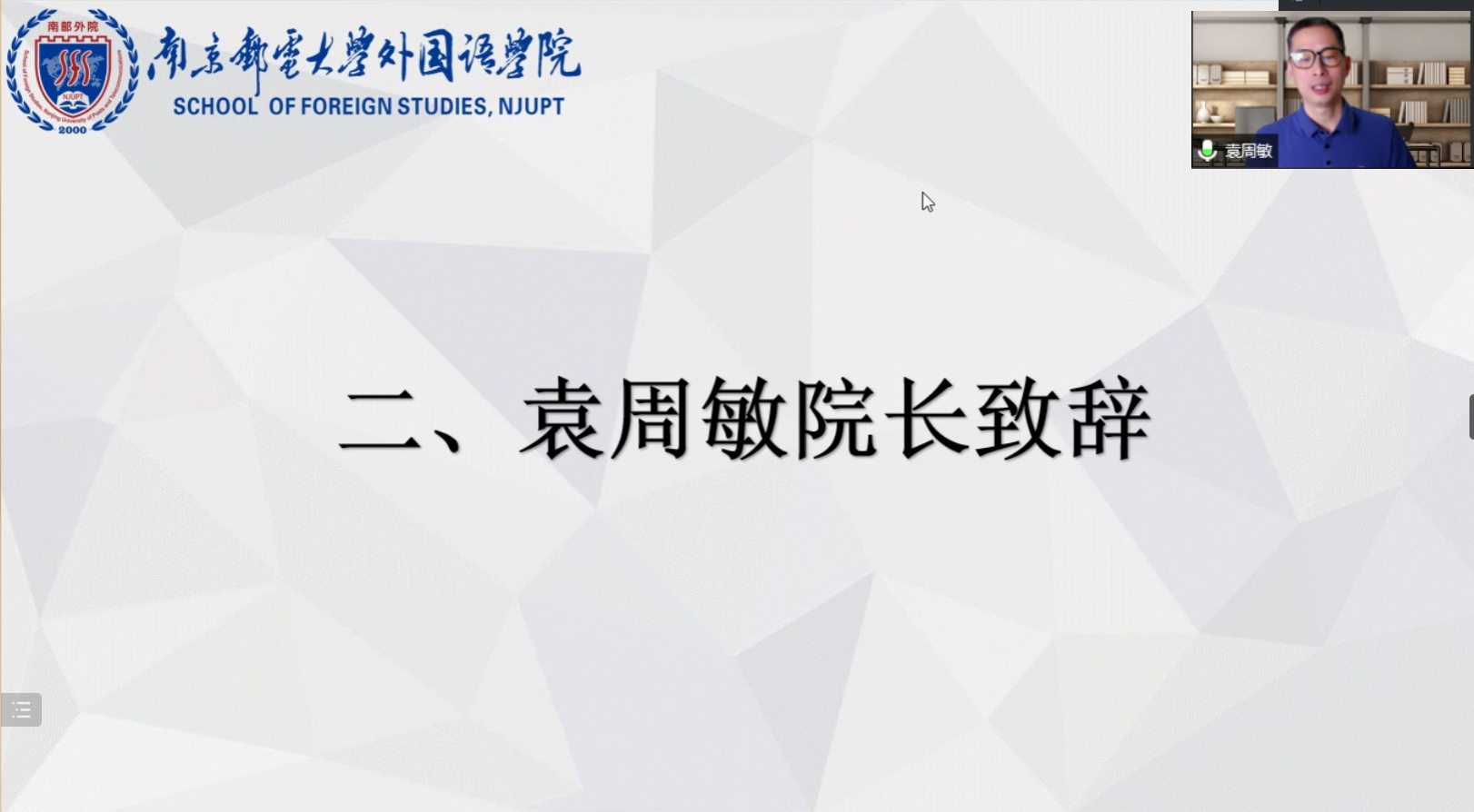 袁周敏院长在致辞中表示,启动2023届云上考研教室的目的是营造良好的备考氛围,提供从报考、备考到复试全过程的指导和帮助,助力同学们顺利考取研究生。袁院长通过“如何选择适合自己的学校”来引导学生展开思考、科学合理择校,同时就目前严峻的就业升学形势和外语的研究方向等方面进行了详细介绍,并鼓励同学们抓住暑假黄金备考期,脚踏实地、勇往直前。