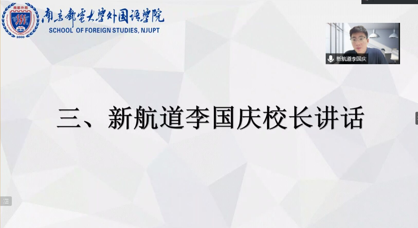 新航道南京学校校长李国庆就暑假期间如何科学合理备考给同学们进行了指导,鼓励同学们发扬“我坚持,我成功”的精神,全力备考,奋力拼搏,争取在考研的道路上梦想成真。谭鑫老师介绍了2023届考研学生的整体状况,和云上考研教室的具体组织方式。云上考研教室实行严格的每日打卡制度和奖惩制度,配备小班主任,以期更好提升大家的积极性和复习效率。