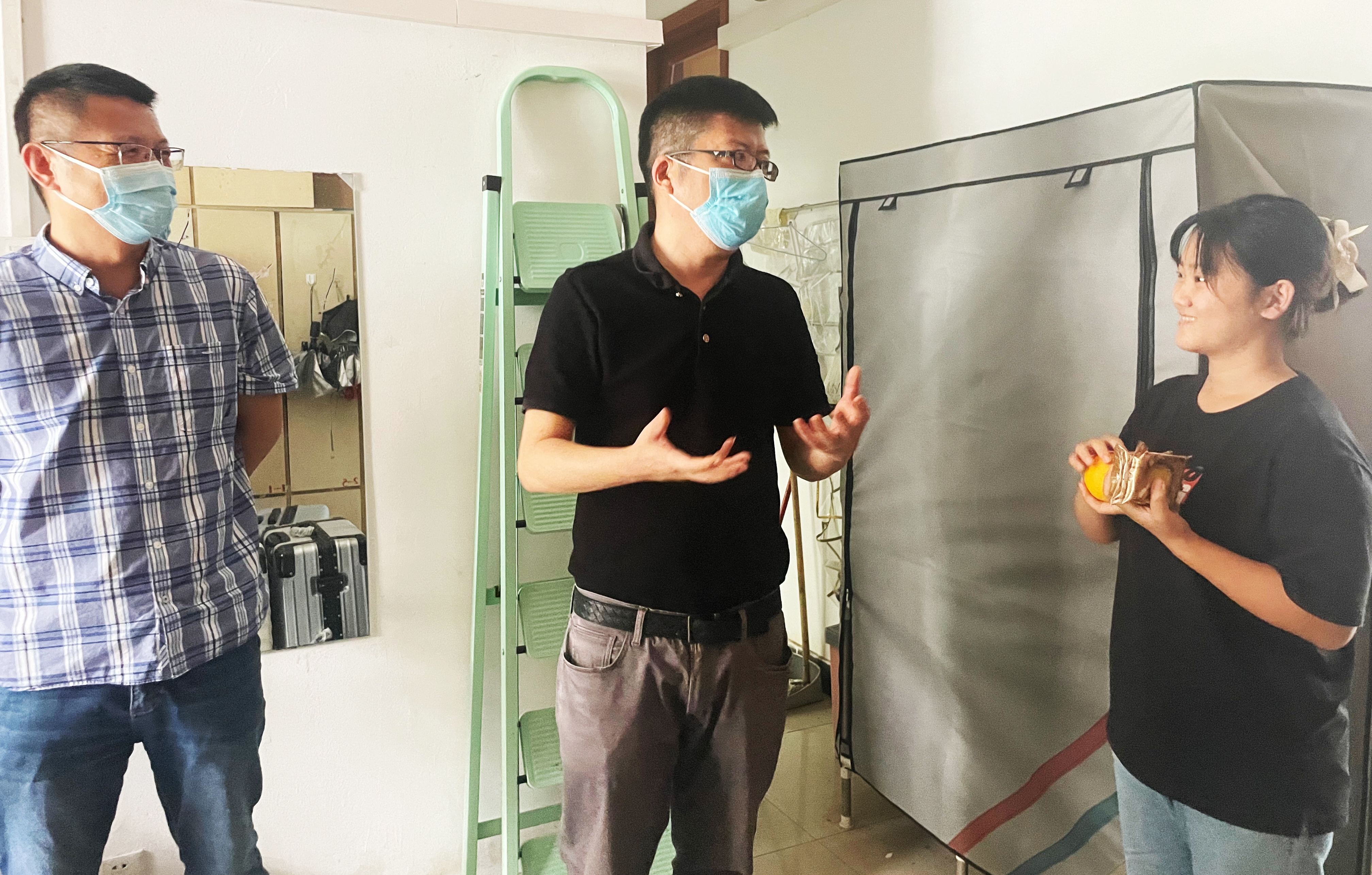 老师们前往桃苑、南荷、北荷学生宿舍,送上了月饼、水果等节日慰问品,更送上了外院大家庭的关心和问候。走访中,老师们关心同学们考研进度,引导他们合理选择报考院校;指导同学们树立正确的就业观,及早落实就业;叮嘱同学们共同守好疫情防控底线,做到防“疫”与学习两不误。
