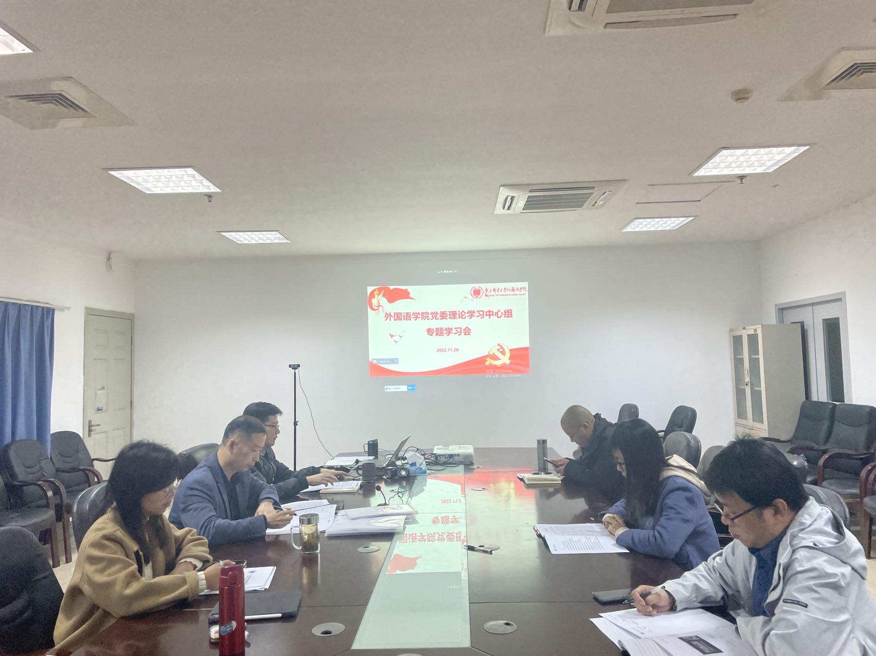 院长助理洪洁在重点发言中就《中国共产党章程(修正案)》中“充分发挥人才作为第一资源的作用”内容发表学习感想,她表示高校是培养人才的主阵地,立德树人是教师的根本任务,只有重视人才自主培养,才能从根本上牢牢把握创新发展主动权。在人才培养方面,我们需要不断开创工作新局面,要结合国家和地方产业发展需求和方向,充分发挥学校办学优势和办学特色,积极推进产学研合作,推动教学内容、教学方法和教学模式创新,提升学生综合素质,培养“外语+信息”的复合型、高水平、特色人才。