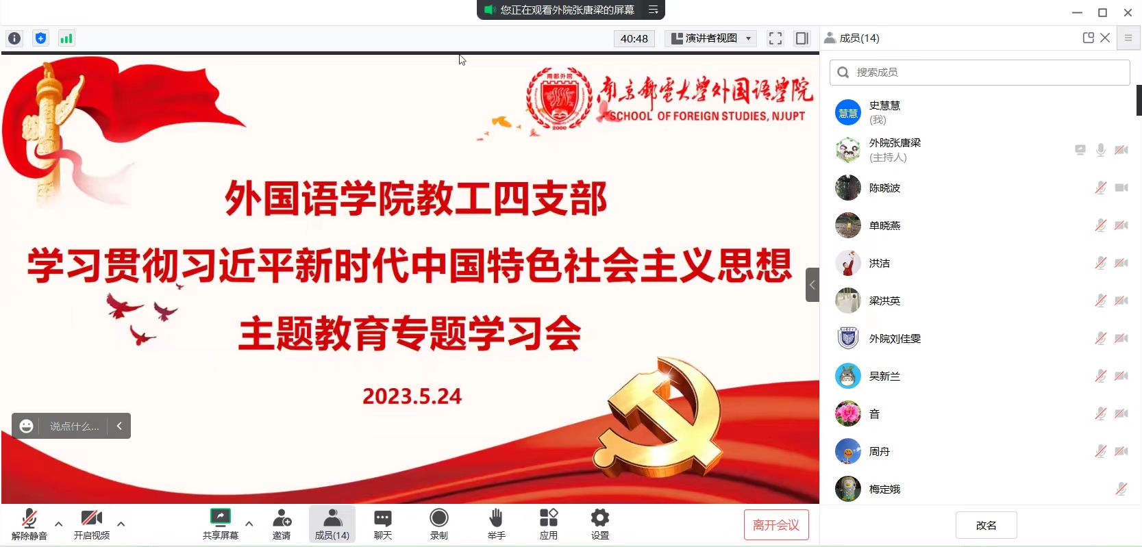 为深入开展学习贯彻习近平新时代中国特色社会主义思想主题教育,按照主题教育工作安排,5月24日下午,教工四支部召开“尊崇党章、维护党章”专题学习会。专题学习会由支部书记张唐梁主持。