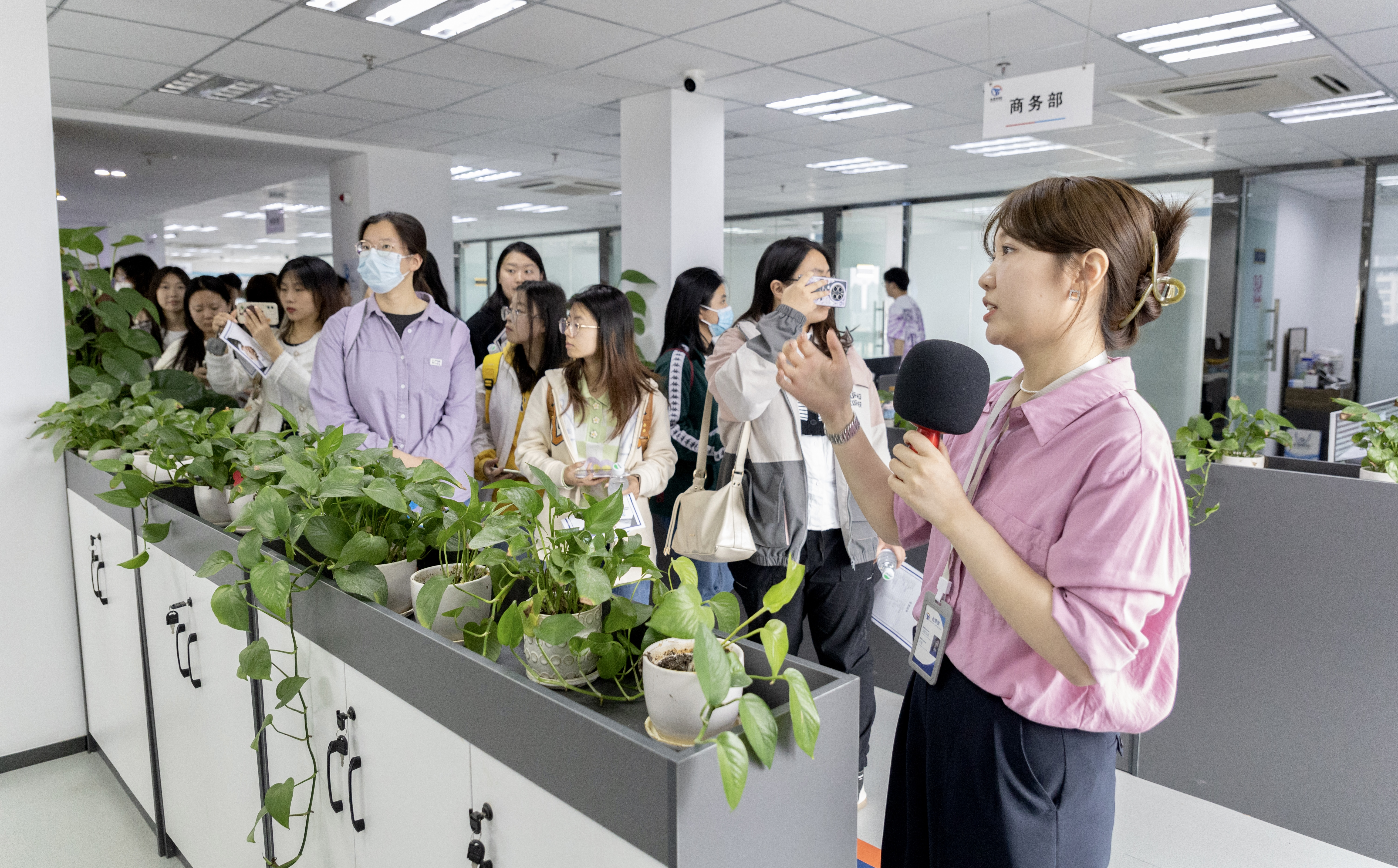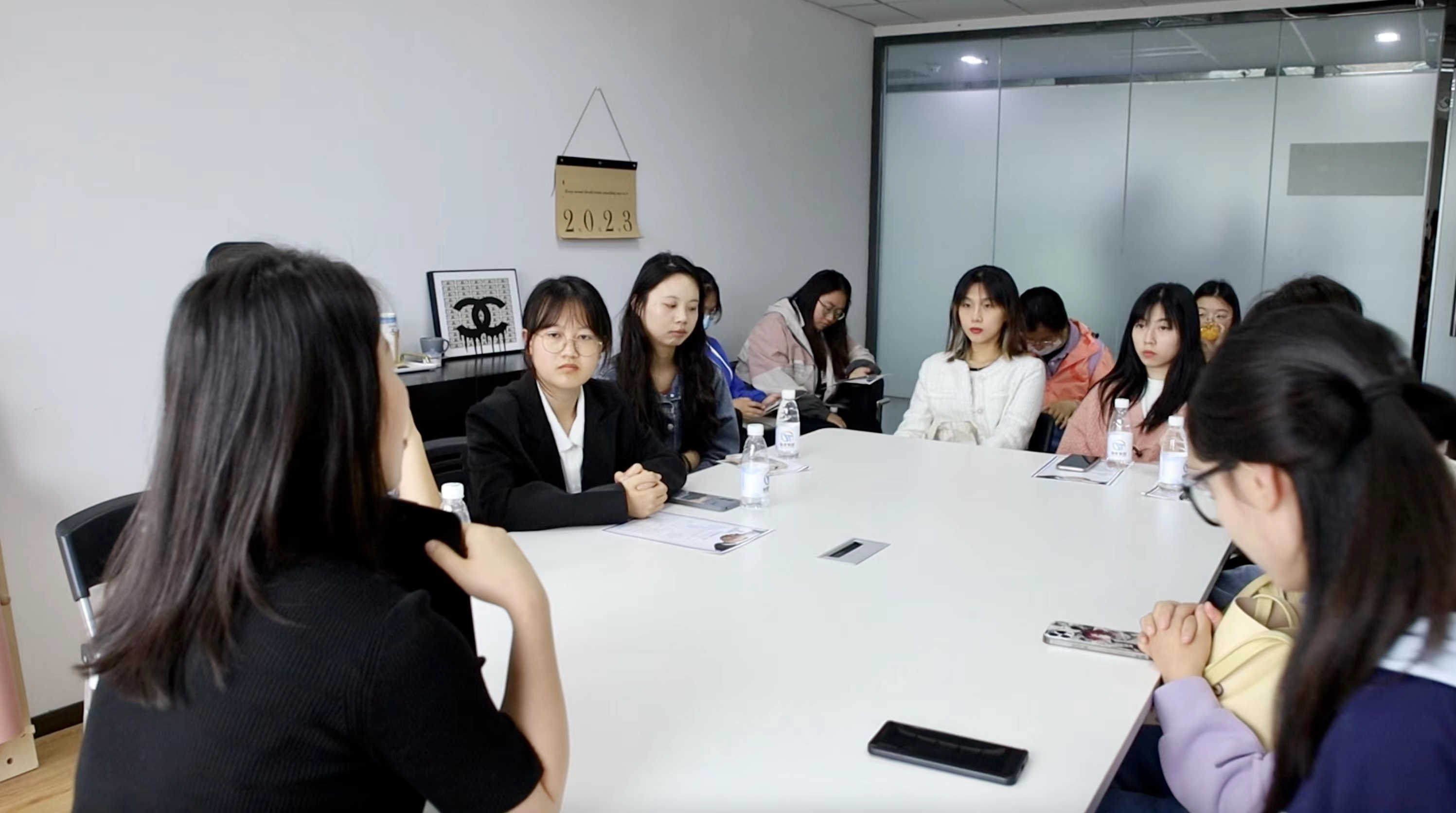 在“遇见”灿唐环节,灿唐公司策划部负责人倪媛媛带领同学们参观公司内部布局,对公司部门任务分配、环节运作、发展历程、技术实力、文化福利等方面进行了介绍,让同学们在加深“企业”这一概念认知的同时,形成对企业运作过程的初步了解。