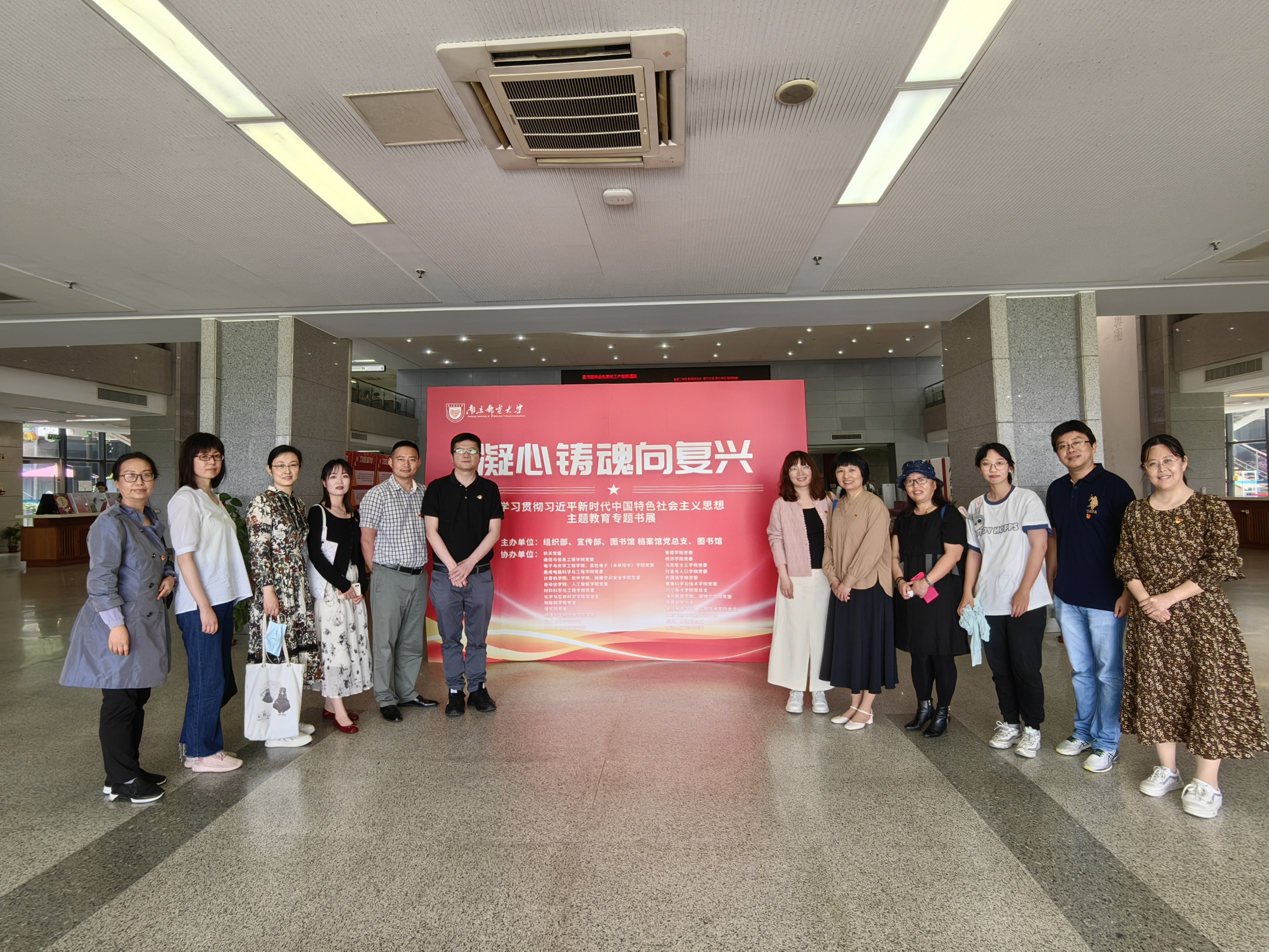 为深入开展学习贯彻习近平新时代中国特色社会主义思想主题教育,5月30日,新葡的京集团8814教工四支部组织支部党员参观学习了由学校组织部,宣传部,图书馆、档案馆党总支以及图书馆联合主办的“凝心铸魂向复兴”专题书展。