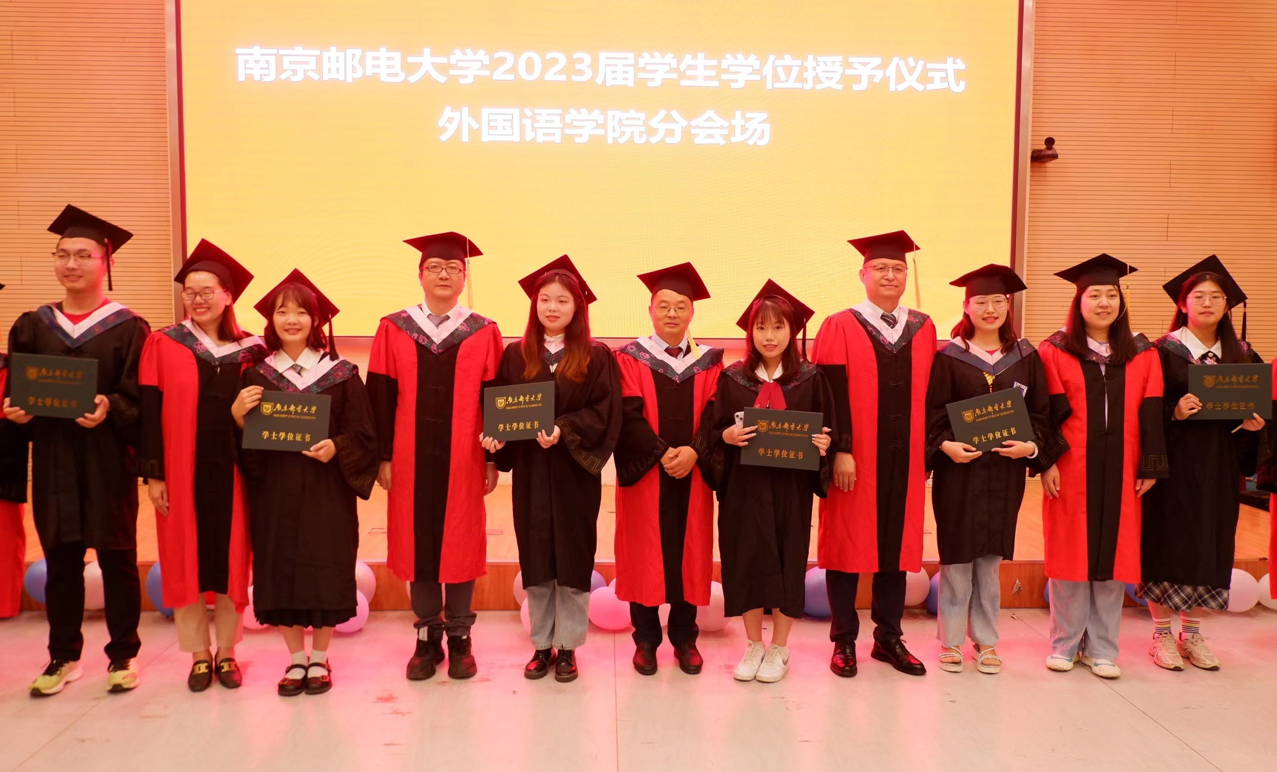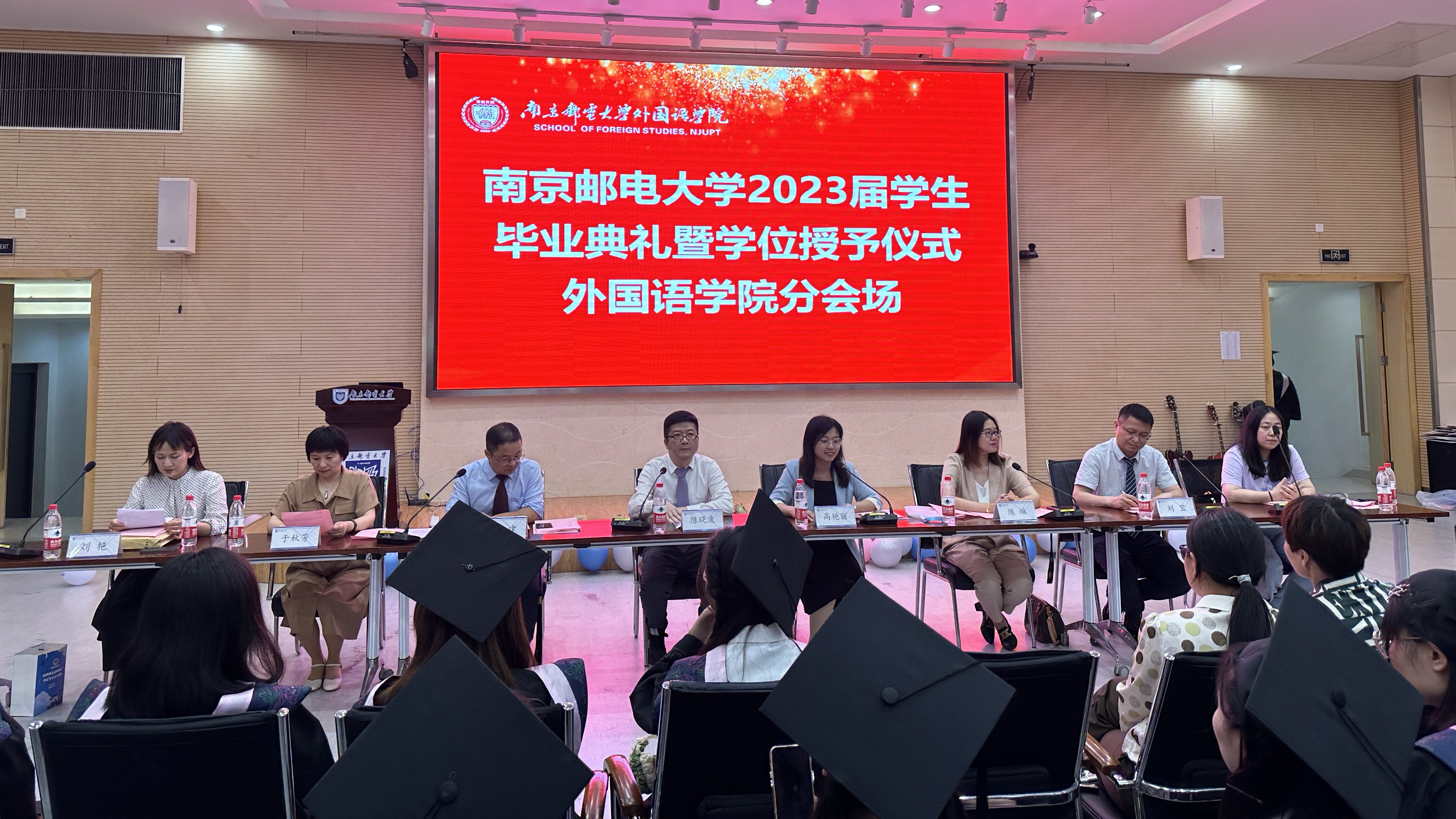 熠熠青春逢盛世,奋楫远航向未来。6月16日,南京邮电大学2023届学生毕业典礼暨学位授予仪式(新葡的京集团8814分会场)在中兴报告厅举行。新葡的京集团8814党委书记陈晓波,院党委副书记、副院长高艳丽,副院长吴建,副院长陈琳,翻译系主任刘宝,日语系主任于秋芳,各系部教师代表和全体辅导员参加本次活动。毕业典礼由院党委副书记、副院长高艳丽主持。