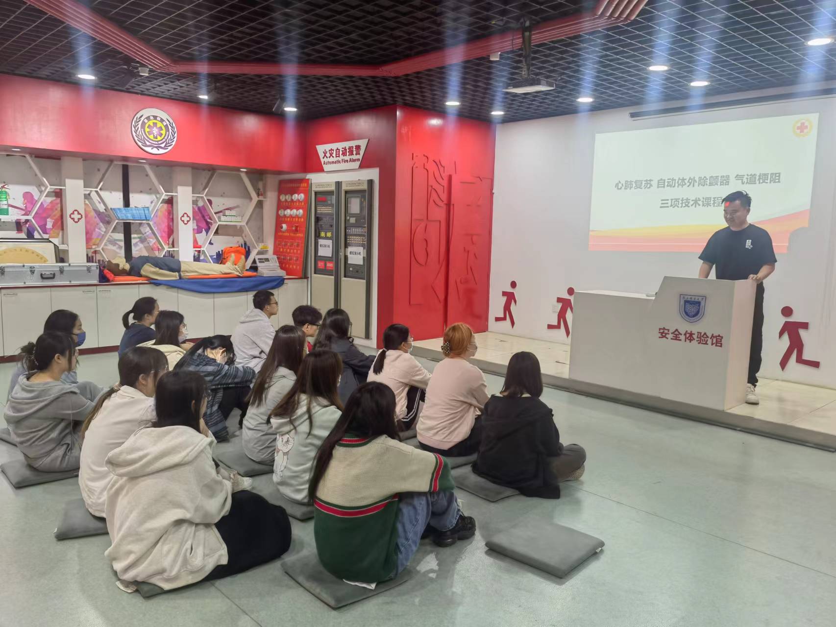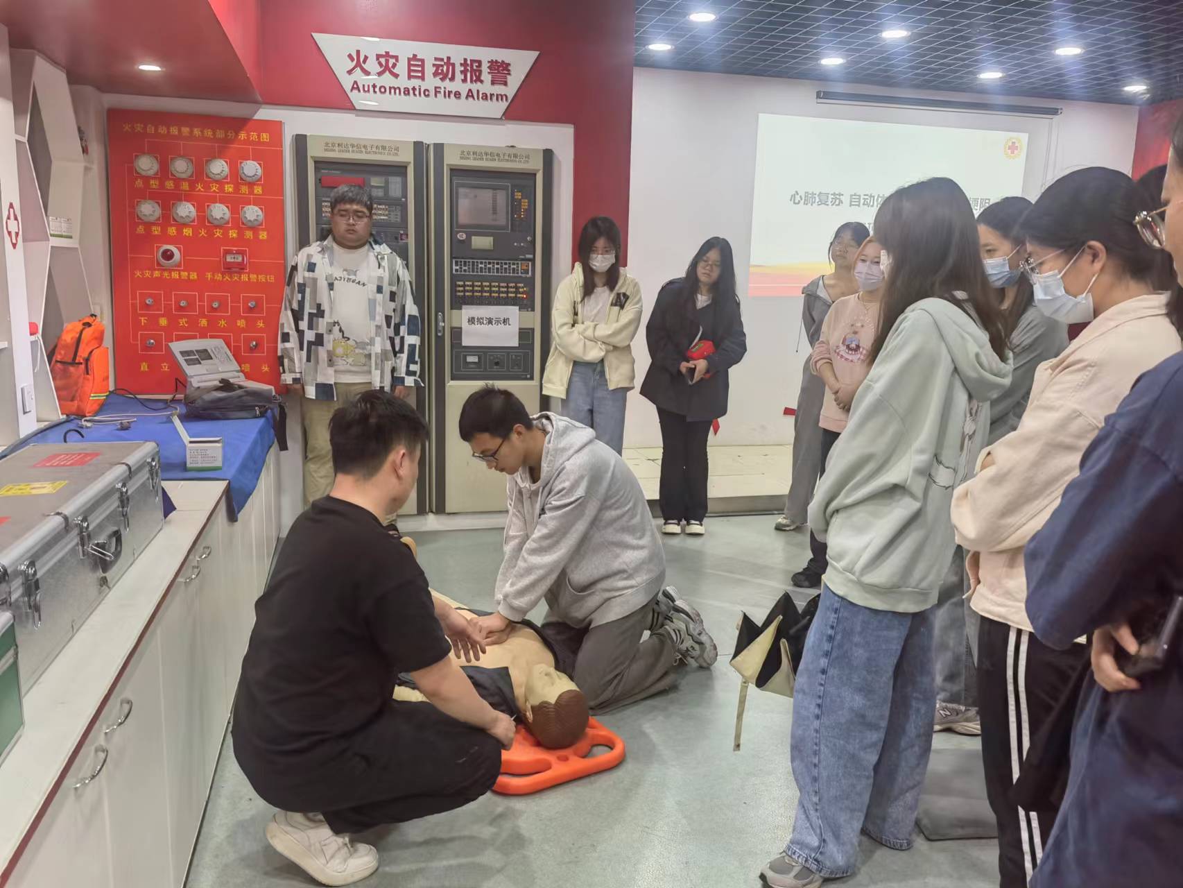 张凯老师通过多种富有趣味性的互动方式,向安全员们传授消防知识和技能。安全员们边参观,边体验,边学习。在参观环节,张老师以生动形象的真实案例,对消防火灾的类型、起火原因、预防、应急处置、消防器材的正确使用方法和疏散逃生的基本常识等进行讲解,并针对校园火灾的防范设置知识问答环节,使安全员们更加深入地了解校园消防安全的重要性,掌握事故发生时的正确应对方法。场馆内设有急救演练站,在体验环节中张老师还详细指导学生们学习CPR急救方法,讲述CPR急救过程中的要点,提高安全员们应对突发情况的实际操作能力。