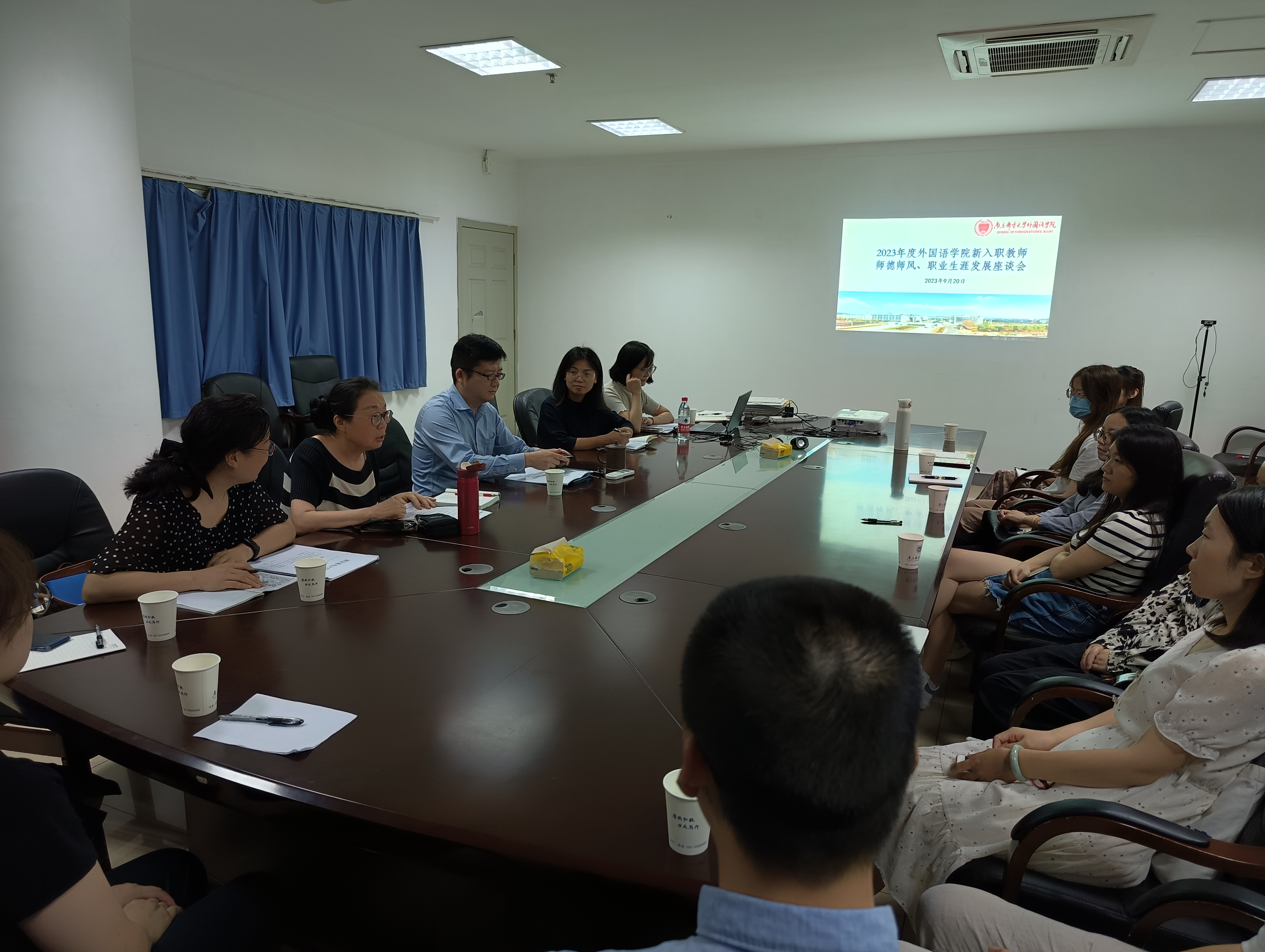 2023年9月22日下午,新葡的京集团8814召开新入职教师师德师风暨职业生涯发展座谈会。学院党委书记陈晓波、副书记高艳丽、院关工委副主任何秋沙、教学督导组组长柏云彩、院办主任张唐梁以及近三年新入职的教师参加座谈。座谈会由院党委副书记高艳丽主持。