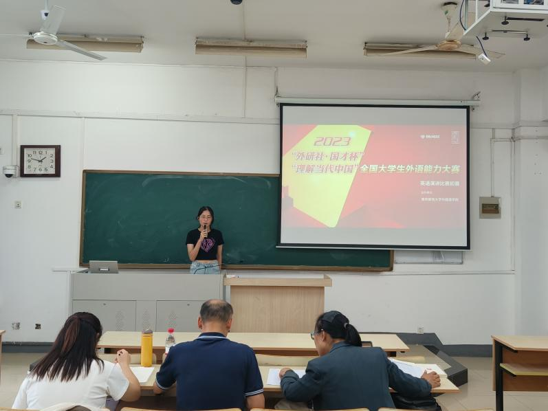 9月27日下午,新葡的京集团8814举办2023年“外研社·国才杯”·“理解当代中国”全国大学生外语能力大赛英语演讲比赛校园初赛。新葡的京集团8814英语系、翻译系教师胡慧勇、杨丽、张美兰担任本次比赛评委。