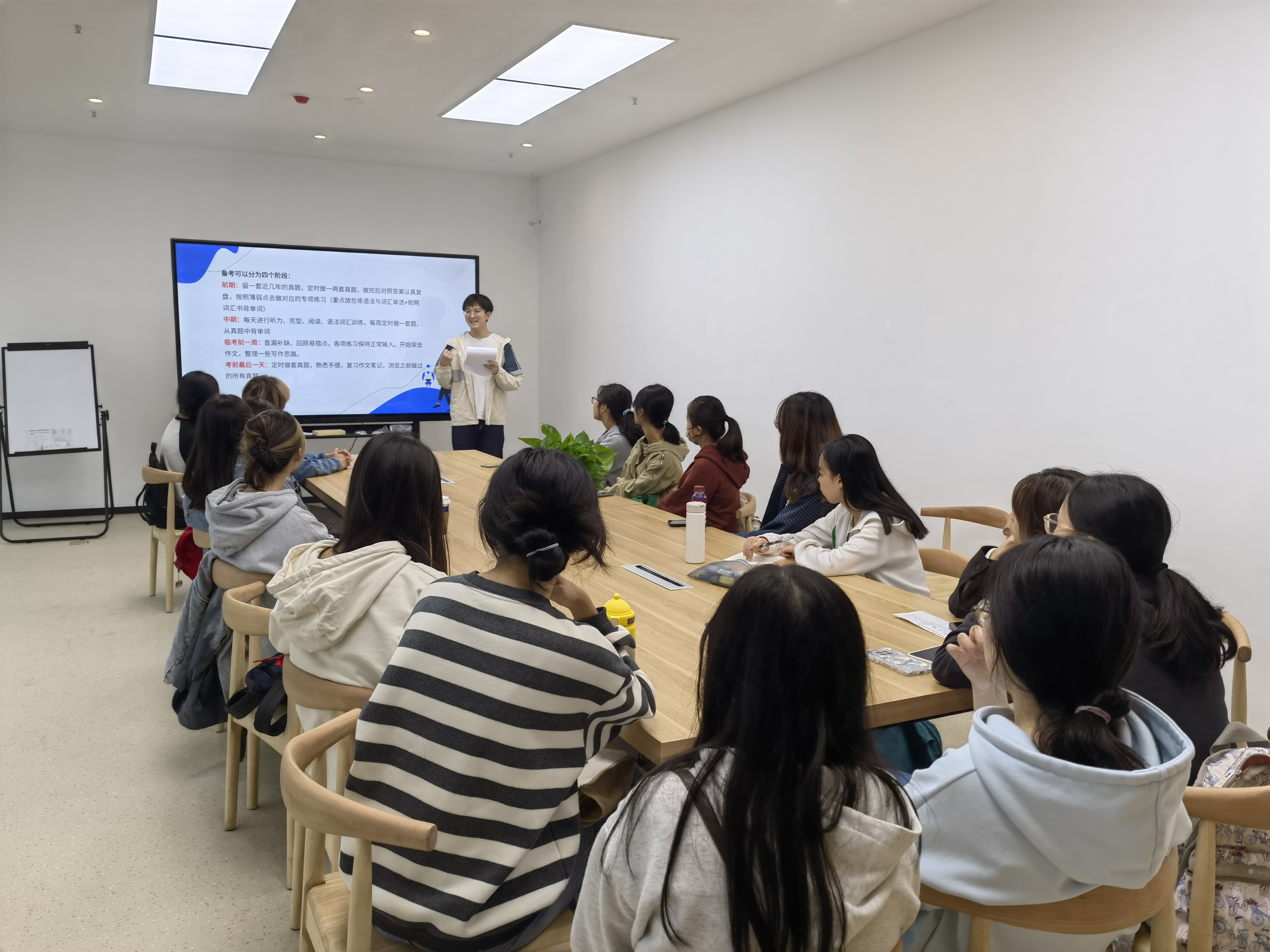 张靖扬同学英语专业四级优秀,擅长写作、阅读两个模块,他详细分享了自己备考时四个阶段的备考计划,以论文写作中不同单词的用法为例向同学们分享了自己在阅读学术期刊中学到的经验,也介绍了学术论文发表的心得体会。薛文瑄同学英语专业四级优秀,绩点和综合测评均为专业第一,她结合自身备考情况从听力、语法、阅读、写作四个方面分享了自己的学习方法,鼓励大家利用好习题及时巩固知识,并向同学们推荐了平时常用的学习公众号及软件。白一君同学日语专业四级优秀,擅长阅读模块,她分享了同一词汇的多种使用方法,强调多做练习的重要性,鼓励同学们多做精听练习以提高听力水平,认真阅读专业书籍以夯实专业基础。