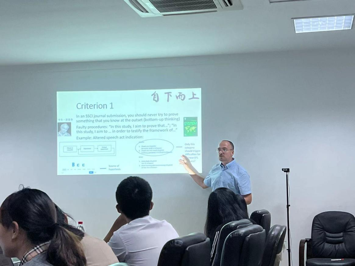 此外,Dr.Kadar教授还分享了自己在语用仪式方面的研究成果,展示了他在这个领域的深厚造诣。他通过具体的案例分析,展示了不同文化背景下语用仪式的差异和相似之处,并就如何开展论文撰写、修改和投稿发表分享了成功经验。
