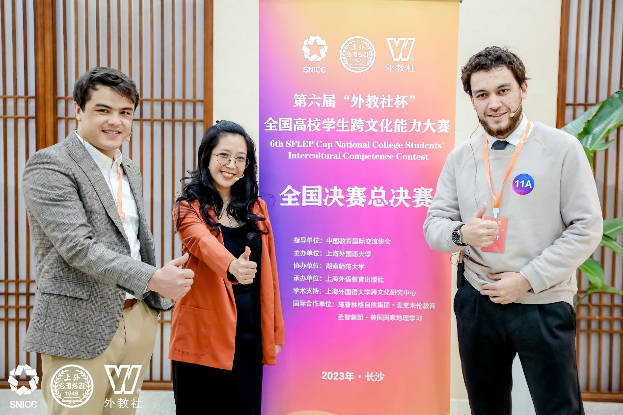 11月30日-12月3日,第六届“外教社杯”全国高校学生跨文化能力大赛全国总决赛在长沙举办,由新葡的京集团8814教师团队指导的我校留学生Nodir Izzatullaev (乌兹别克斯坦籍)、Grace Stevie Prayogo Daewangga (印度尼西亚籍)和Sobirjon Ibragimov(乌兹别克斯坦籍)组成的国际学生团队荣获全国二等奖。