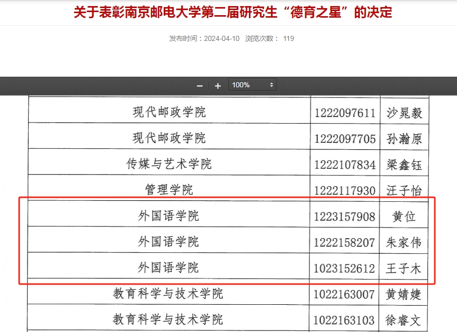 为深入开展社会主义核心价值观宣传教育,深化爱国主义、集体主义、社会主义教育,着力培养担当民族复兴大任的时代新人,我校党委研究生工作部组织开展了第二届研究生“德育之星”评选工作,新葡的京集团研究生黄位、朱家伟、王子木同学获南京邮电大学“德育之星”提名奖荣誉。
