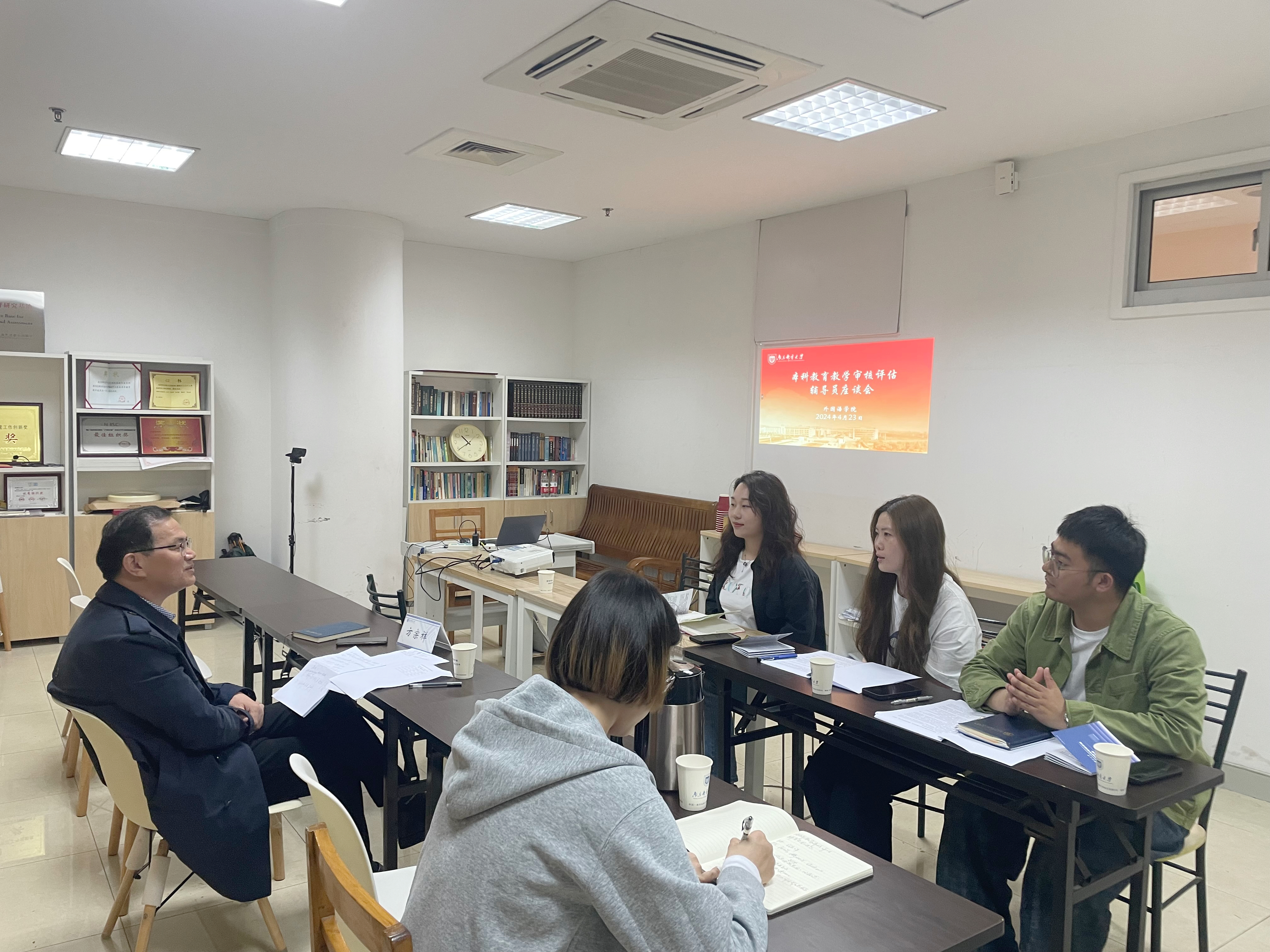 刘胜利副处长对新葡的京集团8814审核评估工作提出要求:学院要进一步加强基层教学组织建设,以一流专业、一流课程为抓手,紧扣学校特色,探索智能教育新形态,推动课堂教学创新改革。要严格课堂教学管理,严守教学纪律,确保课程教学质量。