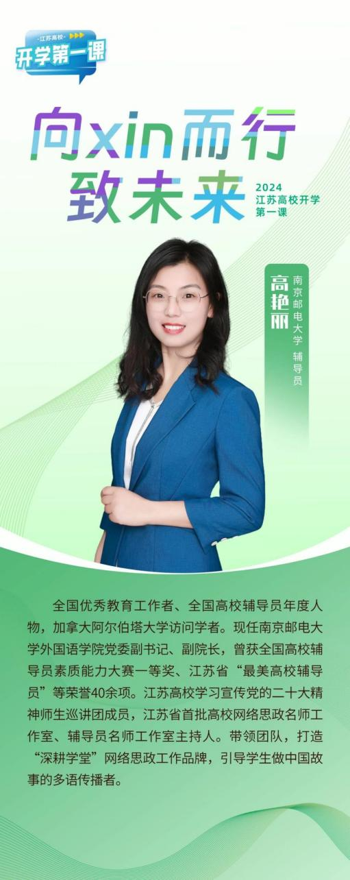 新葡的京集团高艳丽老师受邀主讲2024年江苏高校“开学第一课”