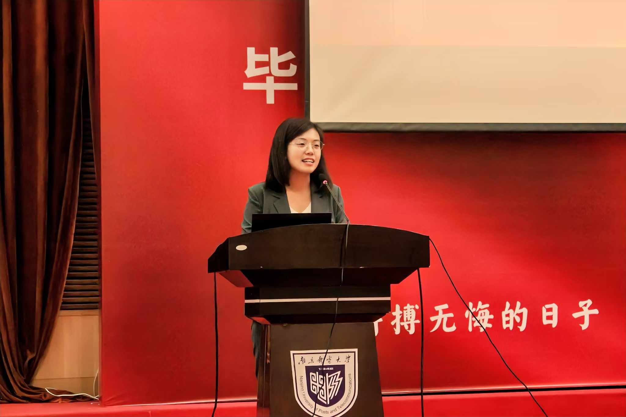 新生班主任代表胡晓岩老师发言。胡老师指出,外语学科已经超越语言本身,更是世界文化的桥梁。她勉励新生们要通过语言与世界对话,通过文化和时代共鸣,做有家国情怀、有全球视野的高素质复合型人才。