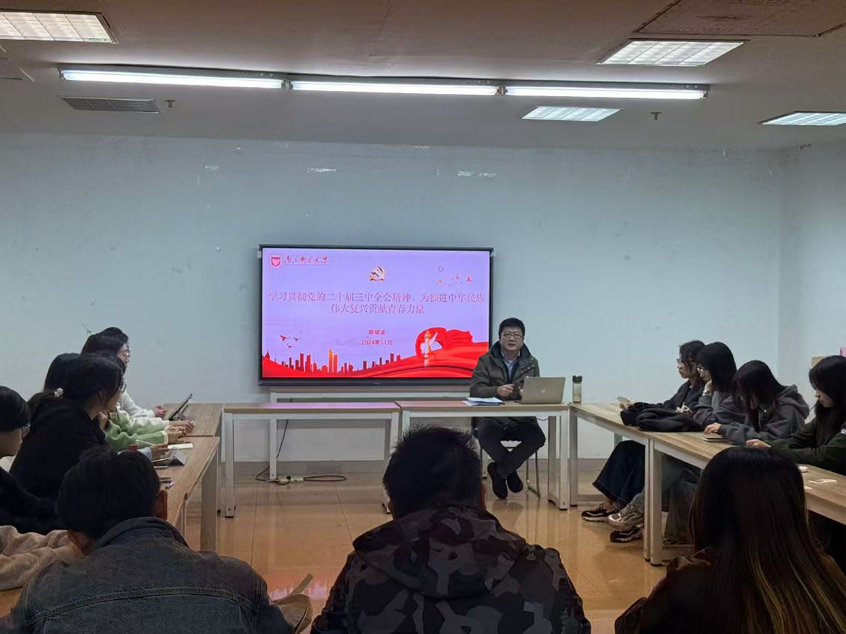 为深入学习宣传贯彻党的二十届三中全会精神,扎实推进大学生党员素质工程,进一步加强对大学生党员的教育引导,强化党员意识,提升党性修养,11月6日,新葡的京集团8814党委开展学生党员座谈会暨“党课开讲啦”主题活动。新葡的京集团8814党委书记陈晓波主持座谈会并讲党课,学生党员参加活动。