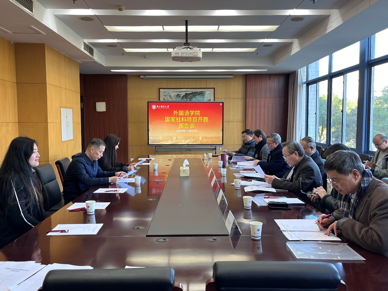 2024年11月29日,新葡的京集团88142024年度国家社科基金项目开题报告会在行政楼第一会议室举行。浙江大学文科资深教授许钧、北京外国语大学讲席教授王克非、西南大学教授文旭、山东大学教授李保杰、上海大学教授傅敬民、南京大学教授杨金才、南京大学教授陈新仁担任点评专家。会议由新葡的京集团8814副院长葛谢飞主持,学院教师和研究生参加会议。