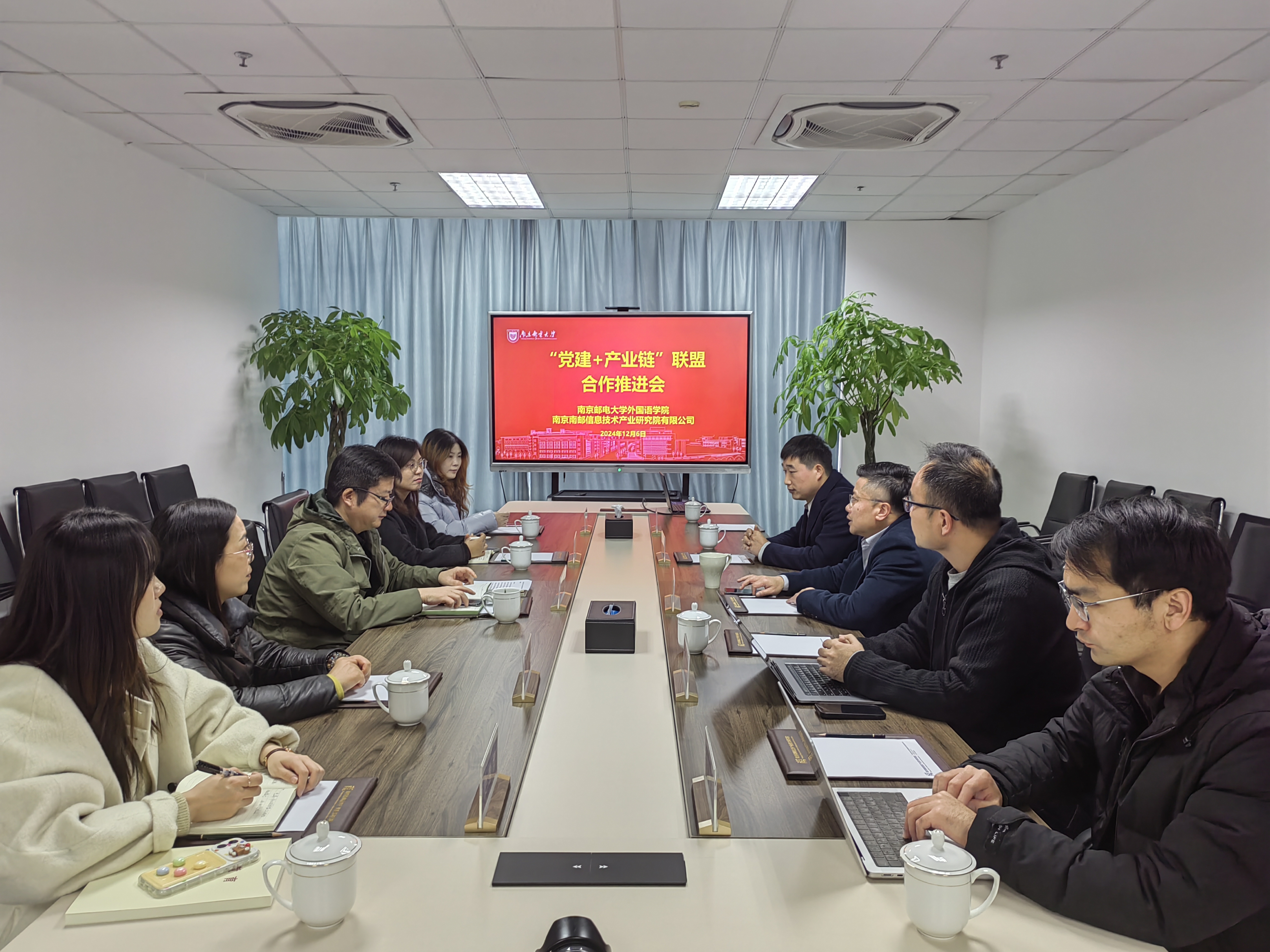 为积极响应江苏省“百所高校对接千个产业链党建联盟”行动,将高校组织资源、人才资源、创新资源等有效聚在链上、融在链上,更好服务发展新质生产力,12月6日下午,新葡的京集团8814党委书记陈晓波、副书记高艳丽带领支部书记、组织员等赴南京南邮信息产业技术研究院有限公司开展共建合作推进会。南京南邮信息产业技术研究院有限公司党支部负责人、党员代表等参加会议。