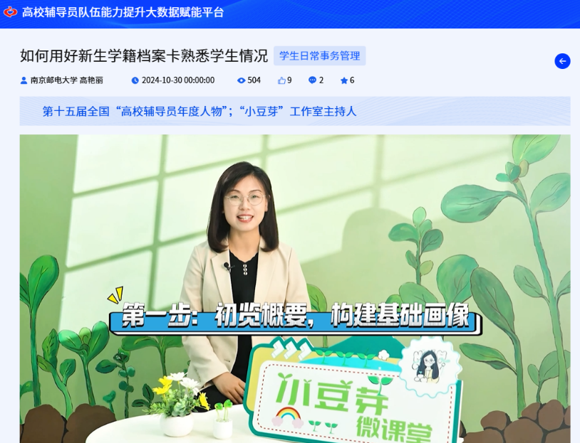 “小豆芽”辅导员素养提升工作室坚持以习近平新时代中国特色社会主义思想为指导,坚守立德树人根本任务,秉持“育德育心,育己育人”的核心理念,聚焦“正能量、管得住、用得好”,着力构筑共建共享、同向同行的高校网络育人格局,打造全国辅导员学习成长共同体、育人育才共同体。2022年入选首批江苏省高校网络思政名师工作室,2024年入选首批江苏省高校辅导员名师工作室,2025年入选入选教育部高校辅导员名师工作室。