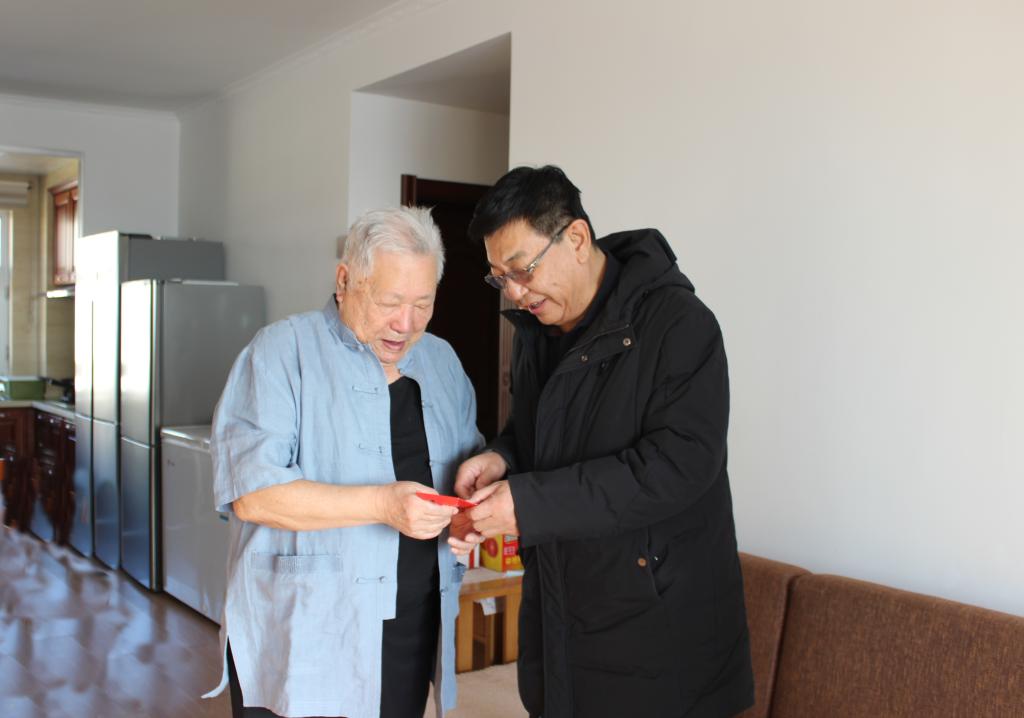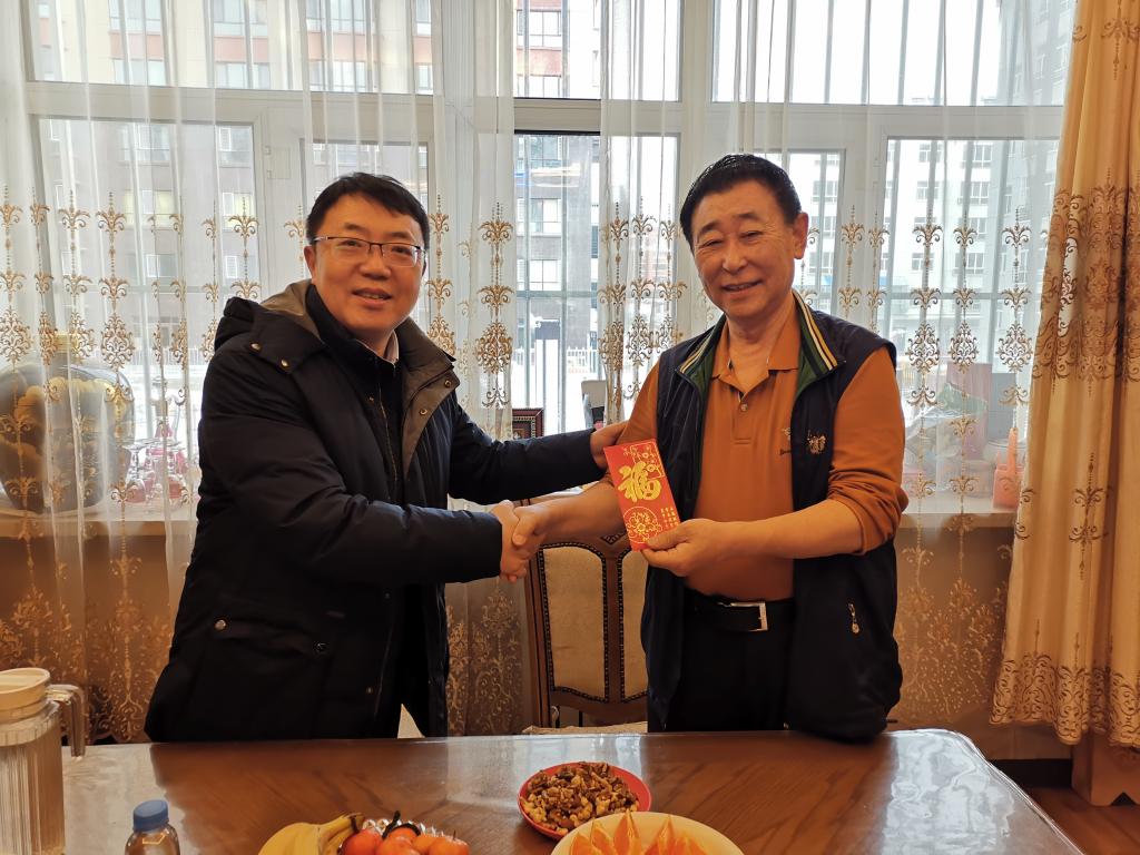 在2021年新春佳节来临之际,学校党委书记王广利,党委副书记、校长王曙光,党委副书记张国栋,党委委员、副校长乌云达来,党委委员、副校长孟祥宏,党委委员、纪委书记岳勇,党委委员、副校长敖特根,党委委员、副校长闫立志在相关部门的陪同下,分别走访慰问了离休老干部、老党员和大病困难教职工等共计55人,校领导代表全校职工向他们致以新春祝福和诚挚的问候!并将节日慰问品和慰问金送到他们手中。
