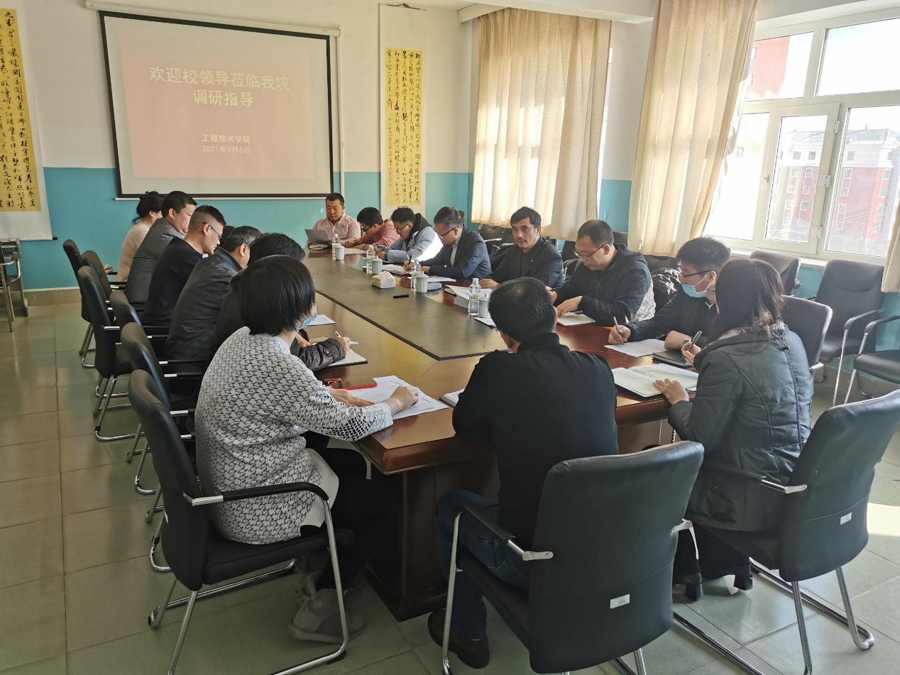 3月5日,校党委委员、副校长敖特根先后深入农林学院、工程技术学院调研,科技处处长田振江和学科建设办公室副主任李洋陪同调研。二级学院领导班子及环节干部参加了调研座谈会。