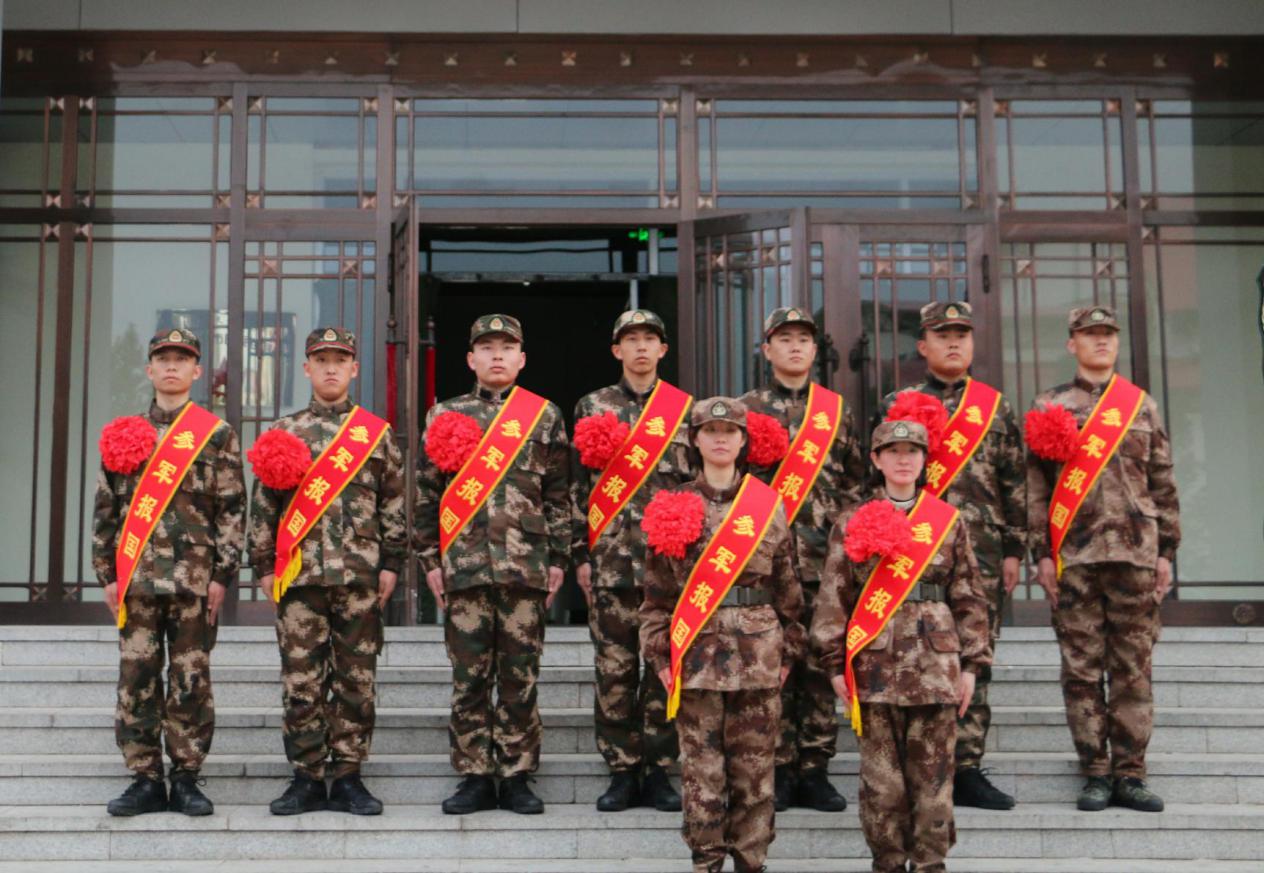 最后,参加活动的领导为应征入伍新兵佩戴红花并送上母校对9名应征入伍学生的祝福。