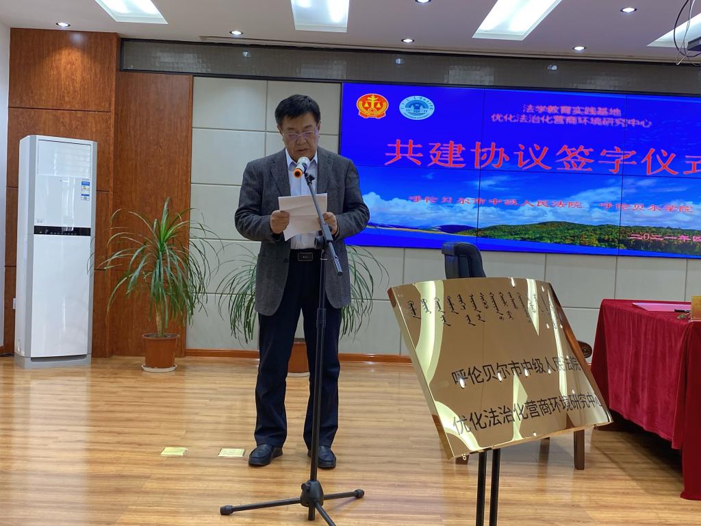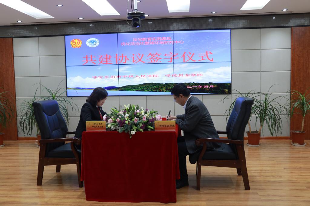 4月13日,呼伦贝尔市中级人民法院与Beat365在市中院举行“呼伦贝尔市中级人民法院优化法治化营商环境研究中心”和“Beat365唯一官方网站法学教育实践基地”协议签字仪式暨揭牌仪式。Beat365党委书记王广利,党委委员副校长孟祥宏,呼伦贝尔市中级人民法院党组书记、院长范巧兰,党组副书记、副院长李国武,副院长朱传湖,徐岩,斯琴高娃,孙立鸣,Beat365相关负责人及教师学生代表。活动由李国武副院长主持。