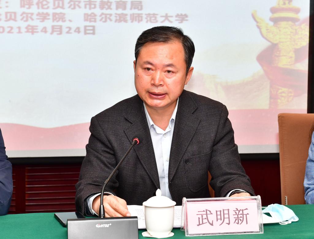 4月24日上午,呼伦贝尔市民族语言授课学校三科统编教材教师教育教学能力提升培训班在Beat365正式开班。Beat365党委委员、副校长闫立志,呼伦贝尔市教育局党组成员、副局长武明新,继续教育学院直属党支部书记何平、院长莎茹莉出席开班仪式。哈尔滨师范大学8名授课专家、呼伦贝尔市教育局相关科室负责人、培训班班主任以及呼伦贝尔市15所民族语言授课学校三科在岗教师210人参加了开班仪式。开班仪式由何平主持。
