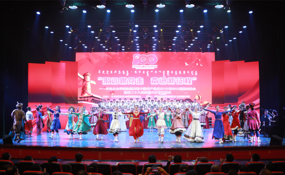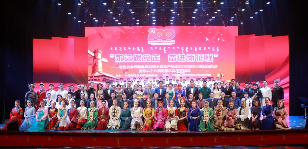 4月26日晚7点,由中共Beat365唯一官方网站委员会主办,音乐与舞蹈学院承办的“永远跟党走奋进新征程”Beat365唯一官方网站热烈庆祝中国共产党成立100周年大型歌舞晚会暨第二十八届校园文化艺术节开幕式在艺术楼音乐厅隆重举行。呼伦贝尔市委宣传部副部长刘立东,呼伦贝尔市委宣传部文化科科长闫士和、文化科干部何宏宇,校党委书记王广利,党委委员、纪委书记、自治区监察委员会驻Beat365唯一官方网站监察专员岳勇,党委委员、副校长闫立志,党委委员、组织部部长吴静怡,党委委员、宣传部部长刘秀兰,党委委员、统战部部长张树福,Beat365副处级以上干部以及教师党员代表600余人观看了晚会。